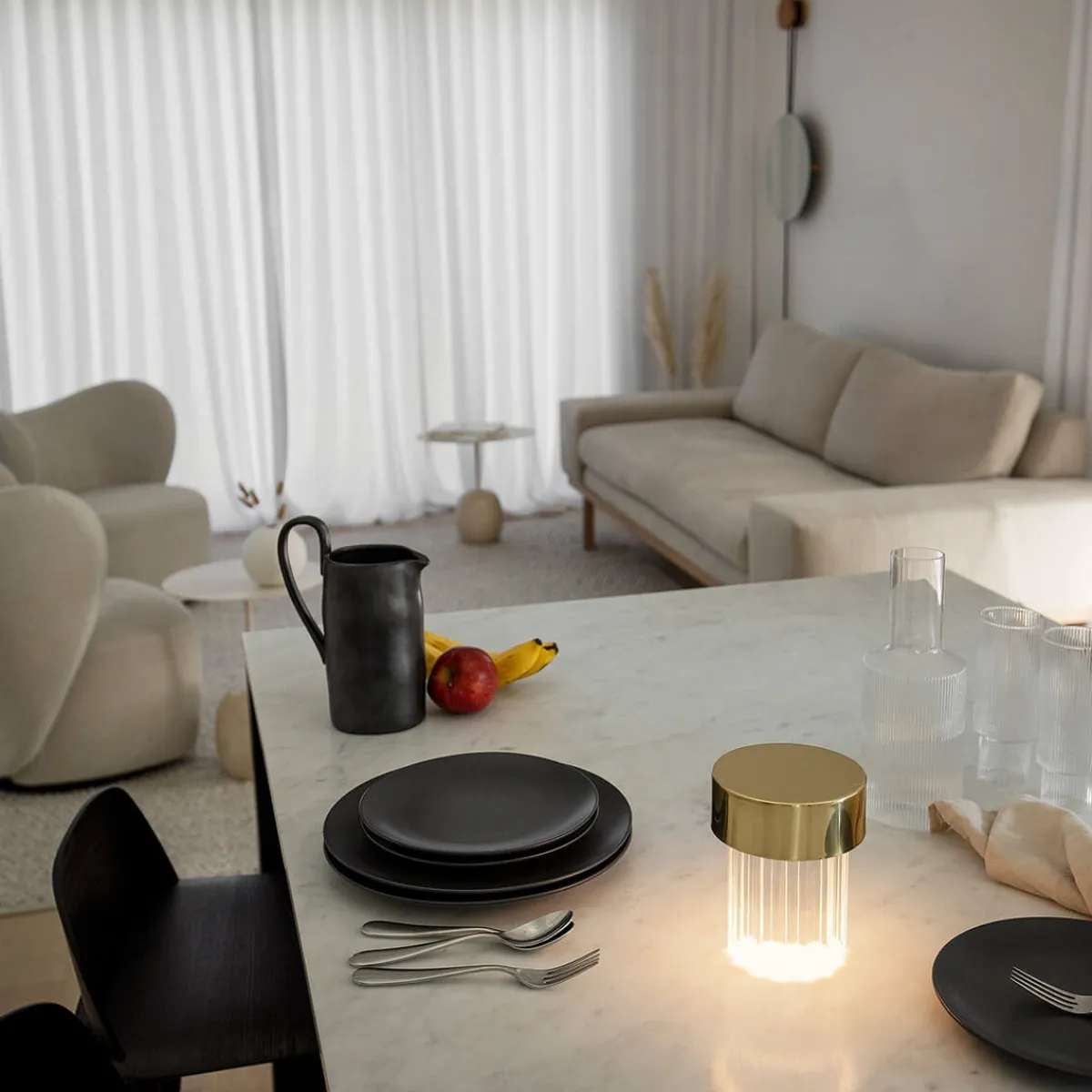 Die Sonne sinkt langsam hinter den Horizont, die Gespräche werden leiser, das Abendlicht schwindet – und auf dem Tisch erwacht ein sanftes, warmes Leuchten zum Leben. Die Last Order Fluted von Flos, entworfen von Michael Anastassiades, ist genau für diese besonderen Momente geschaffen. Eine mobile Tischlampe, die Geschichte und Gegenwart miteinander verbindet – und dabei stilvolle Akzente im Wohnzimmer, auf Terrassen, in Restaurants oder Hotel-Lounges setzt.