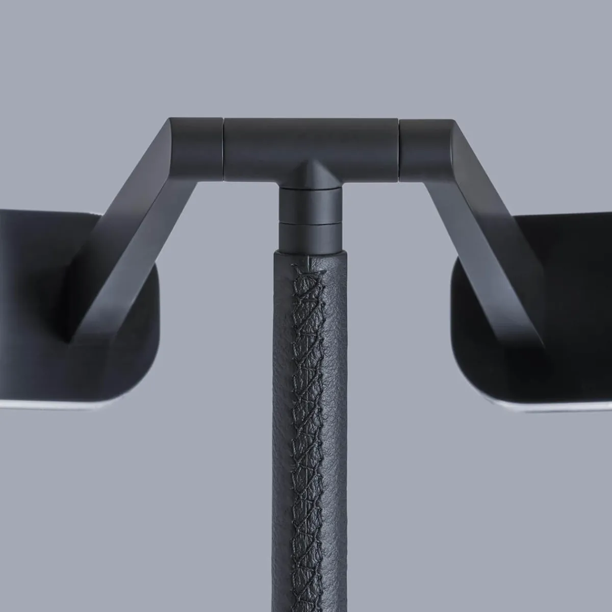 Hinzu kommt der schlanke Leuchtenschaft, der mit feinstem, handgenähtem Ascot Leder ummantelt ist. Bei der Mito raggio lusso caldo ist dieses von brauner Farbigkeit, beim Modell scuro in markantem Schwarz gehalten, bei der Variante vivo in grauer Tönung ausgeführt. Komplettiert wird das eindrucksvolle Design durch den ringförmigen Kopf in edlem Phantom – einer Farbe, die je nach Lichteinfall zwischen metallisch schimmerndem Grau und dunklem Braun changiert.