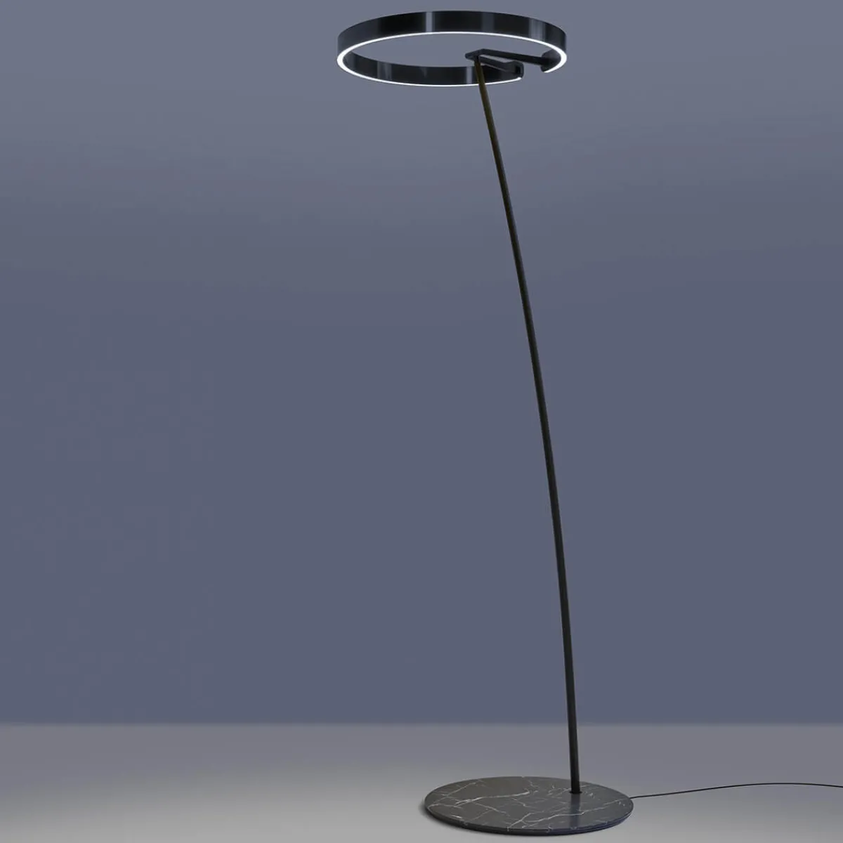 - Ringförmige Stehlampe mit Marmorsockel und Ascot Leder