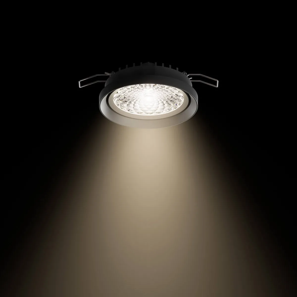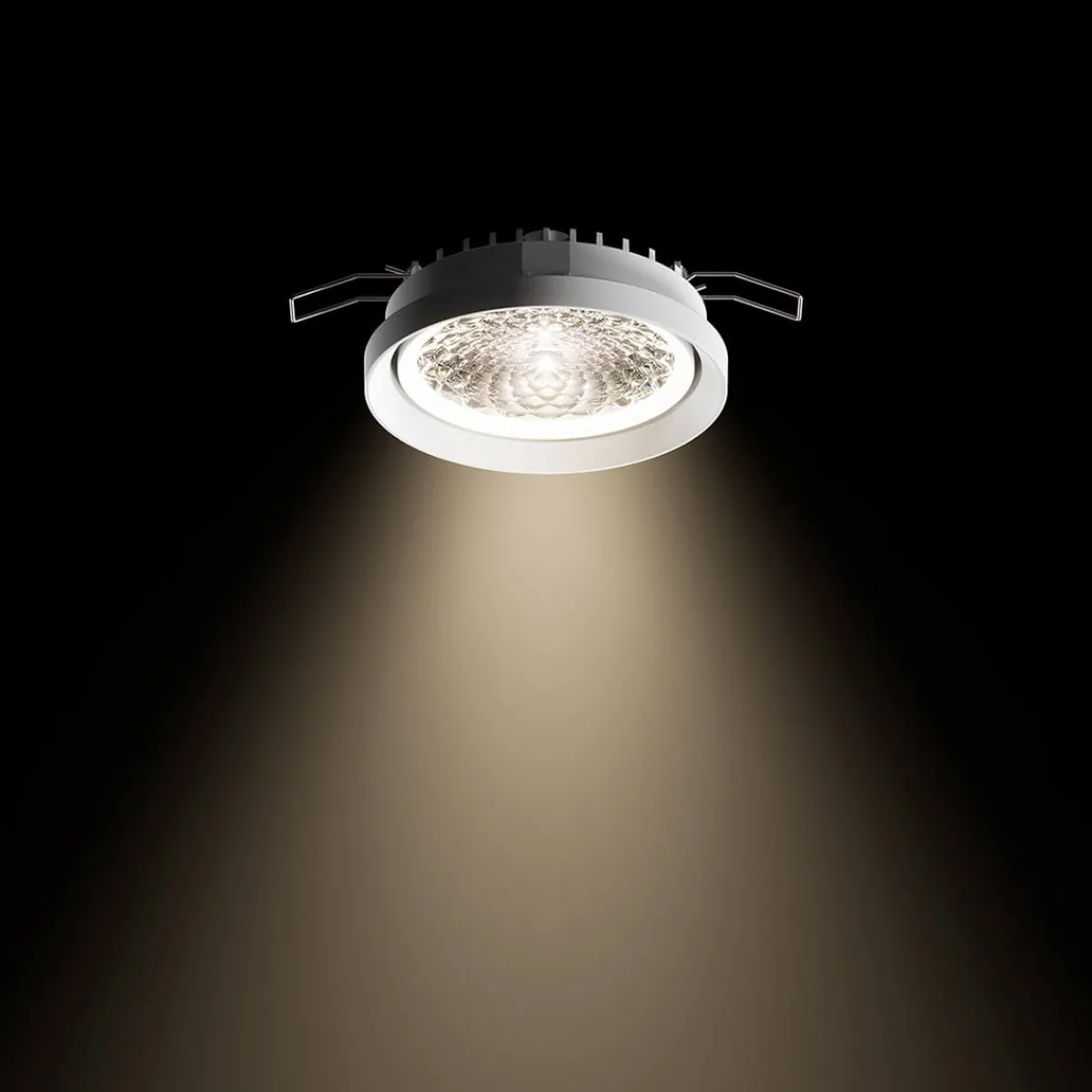 Kernpunkt des Designs bildet die innovative High-Tech-Hybrid-Linse, die mit präzise berechneten Mikrofacetten ausgestattet ist. Diese sorgen für eine homogene und blendfreie Ausleuchtung, frei von unerwünschten Stufungen oder Schlieren. Der Lichtkegel, der am Rand sanft ausläuft, schafft ein angenehmes Lichtambiente mit natürlichen Schatten. Die Linse aus optischem Polycarbonat, ergänzt durch einen Alu-Coating-Reflektor, garantiert eine effiziente und präzise Lichtlenkung.