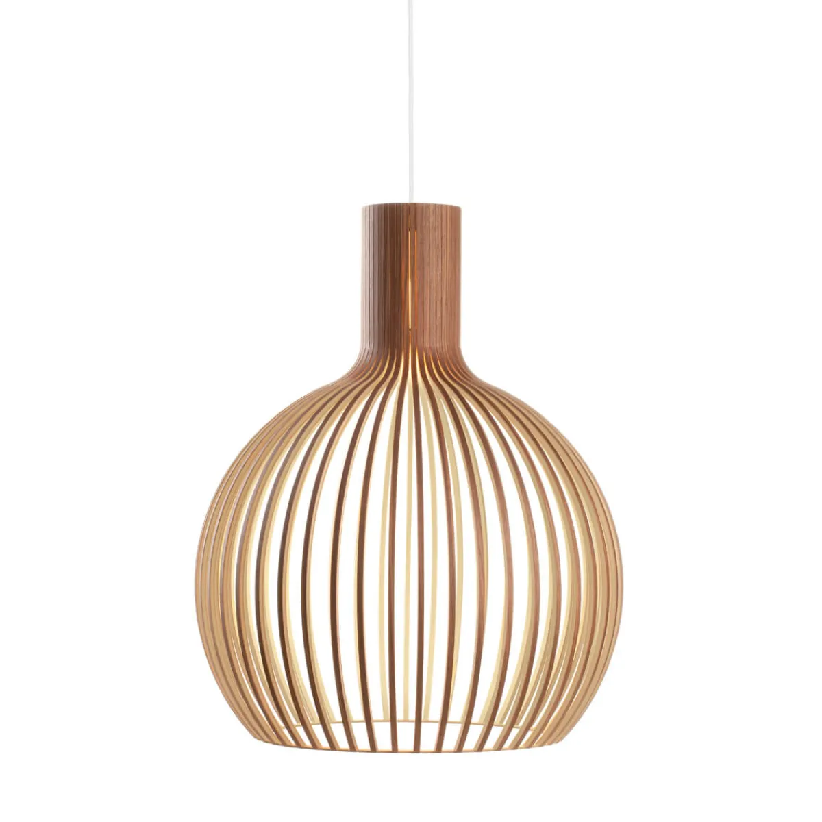 Erleben Sie mit der Octo 4240 von Secto Design skandinavisches Holzdesign in seiner schönsten Form. Die handgefertigte Pendelleuchte aus Finnland verkörpert mit ihrem sanft gerundeten Korpus aus formgepressten Birkenlamellen nicht nur echte Handwerkskunst, sondern auch ein luftiges Design-Highlight im beliebten Scandi Style. Dank der PEFC-Zertifizierung ihres Materials ist sie zudem eine umweltbewusste Wahl.