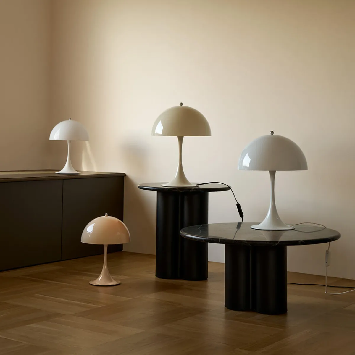Louis Poulsen Panthella 320 Tischleuchte: Designklassiker von Verner Panton mit weichem Licht