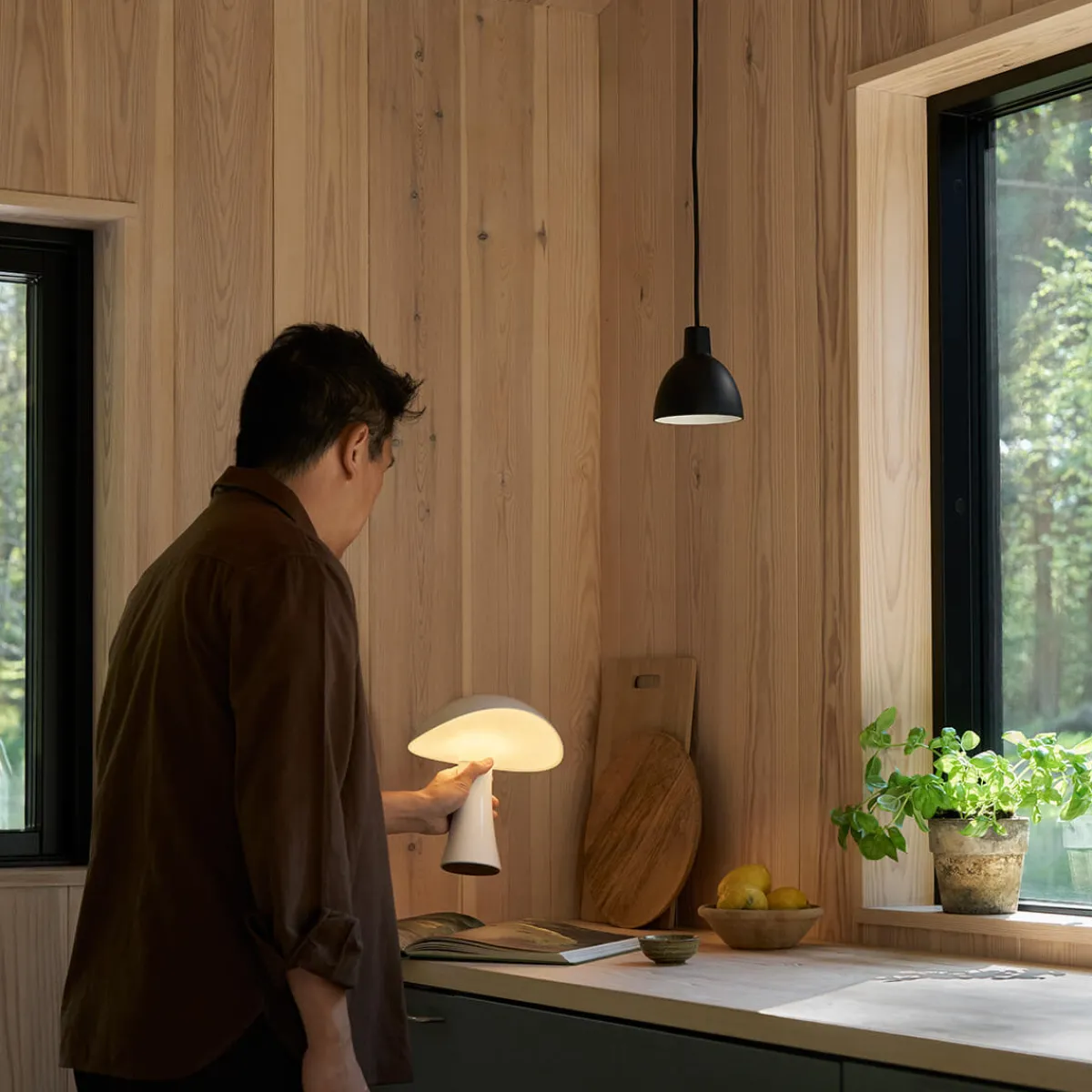 Mit der Rumee 220 Portable präsentiert Louis Poulsen eine kabellose Tischleuchte, die funktionales Licht mit poetischem Design verbindet. Entworfen von Gabriel Tan, erinnert ihre weiche, skulpturale Silhouette an die wellige Form eines breiten Huts. Tan, der für seine Arbeiten im Spannungsfeld von Asymmetrie und Naturästhetik bekannt ist, verleiht der eine emotionale Tiefe, die über ihre reine Funktionalität hinausgeht.
