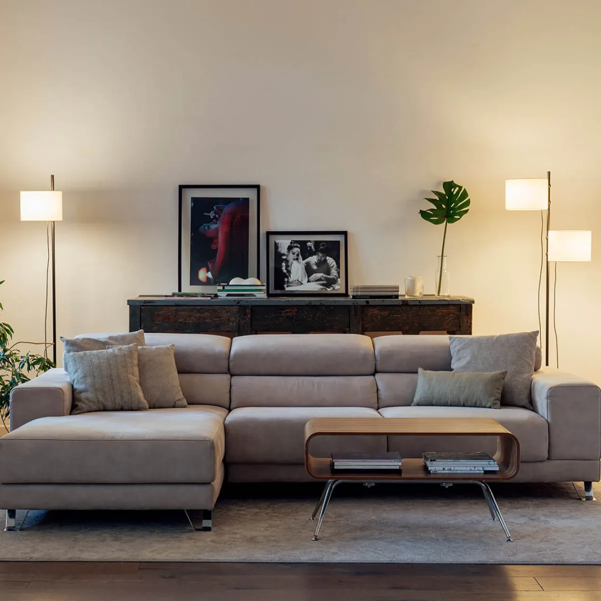 Die Twain Stehleuchte wird vorkonfiguriert mit einem schwarzen, nerzfarbenen oder Messing mattem Gestell und einem oder zwei Leuchten Schirmen aus Polyester angeboten. Für eine wohlige und gemütliche Atmosphäre in Wohnräumen sorgt die Twain Kollektion von Milan und ist danke Ihres Verstellmechanismus sehr flexibel. Die Schirme an der sind nicht nur in der Höhe einstellbar, sondern lassen sich ebenso um 360° Grad drehen.