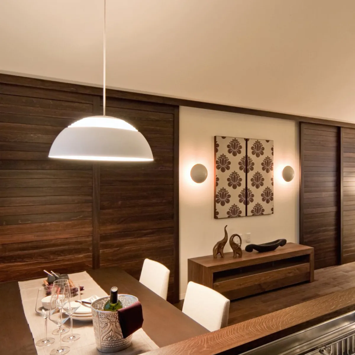 - Abgestufte Ringlamellen aus Stahl erzeugen ein sanftes Indirektlicht