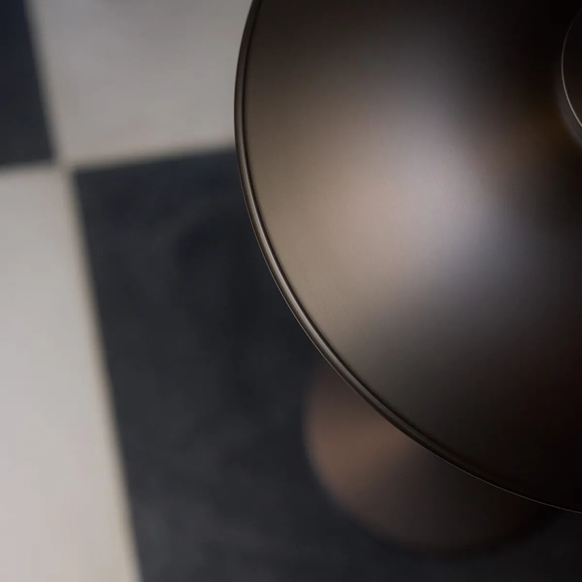 Der obere Schirm der PH 3/2 besteht aus brüniertem Messing mit einer weiß lackierten Innenseite, die das Licht angenehm nach unten reflektiert. Ergänzt wird er durch mittlere und untere Schirme aus dreischichtigem, mundgeblasenem Opalglas – außen glänzend, innen matt sandgestrahlt. Dieses Zusammenspiel sorgt für eine besonders sanfte . Der Sockel aus dunkelbraun lackiertem Messing mit feiner Haarlinienstruktur greift die Ästhetik der Originalversion aus den 1920er-Jahren auf und verleiht der ihre authentische, edle Anmutung.