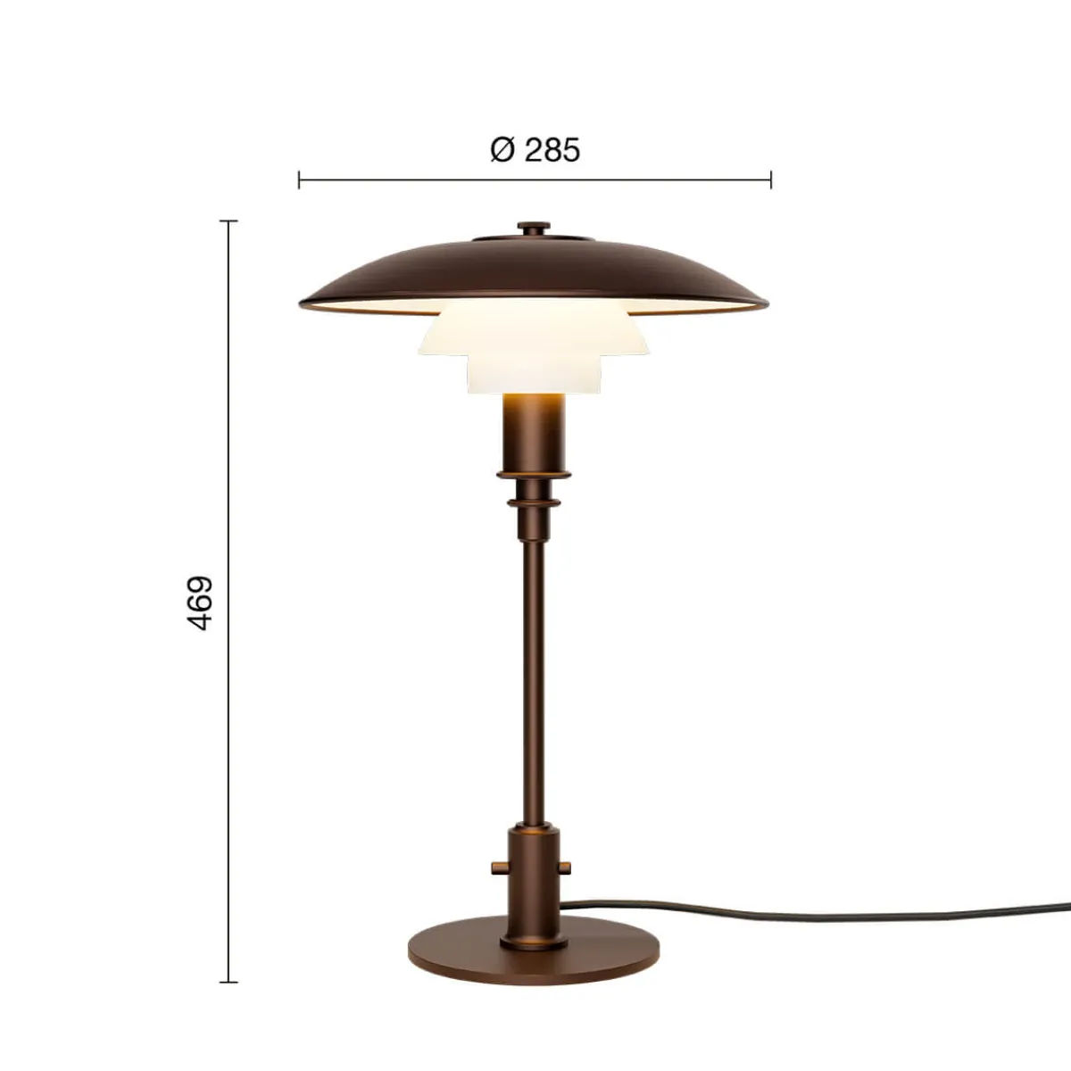 Louis Poulsen PH 3/2 Aged Brass Opal Tischleuchte: skandinavische Designikone für ein warmes Licht