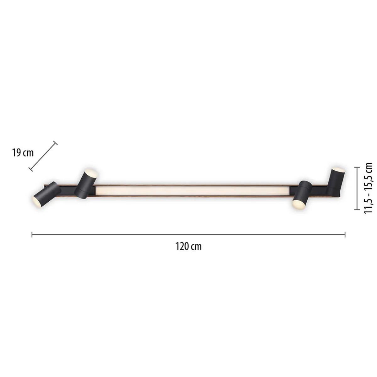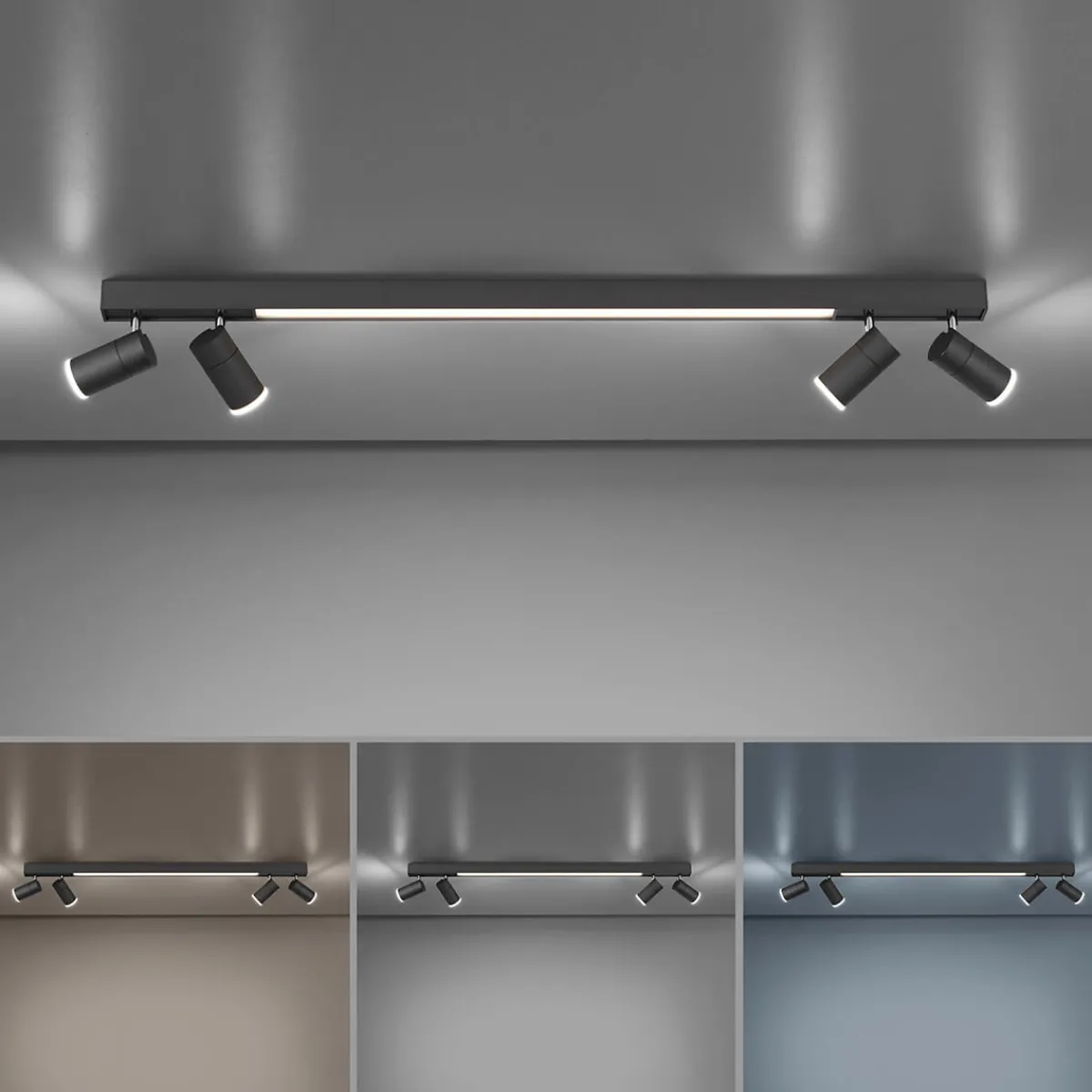 - Lineare Deckenleuchte mit vier Spots für nahezu alle Wohnbereiche