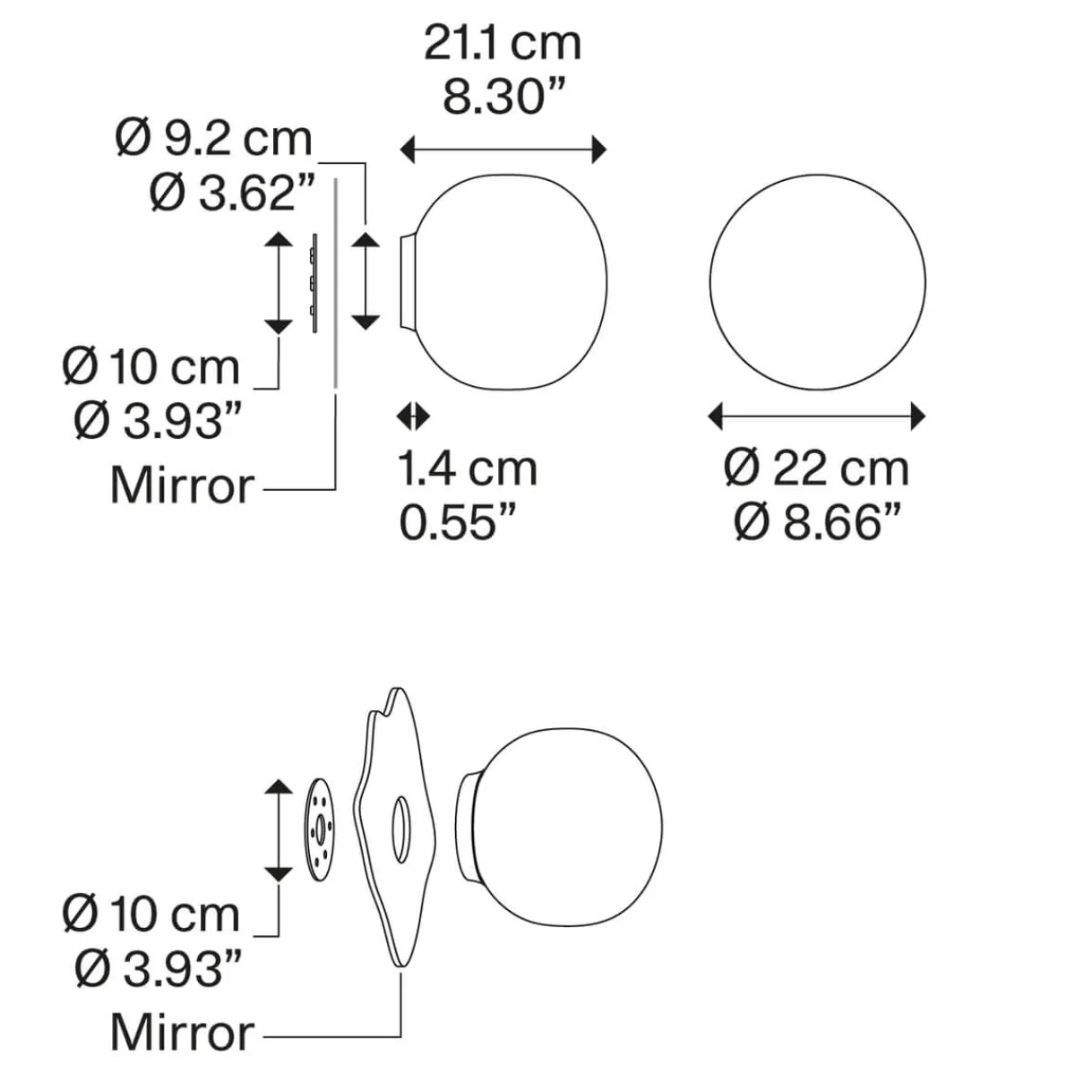 Die Spiegelleuchte Volum von Lodes ist in vier verschiedenen Größen erhältlich und eignet sich dank der hohen besonders für Feuchträume. Aber auch in Wohnräumen macht die eine gute Figur. Die verschiedenen Größen können dank einer mitgelieferten Halterung direkt am Spiegel befestigt werden, um eine optimale Ausleuchtung zu erzielen. Das Glas der Leuchten ist mundgeblasen und hat eine leicht glänzende Oberfläche.