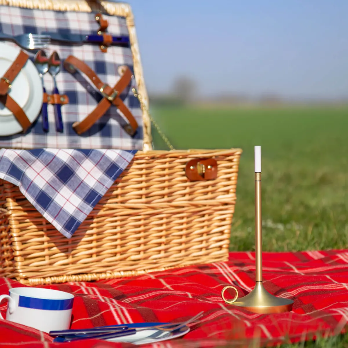 - Einfach mitzunehmen dank ringförmigem Haltegriff am Sockel