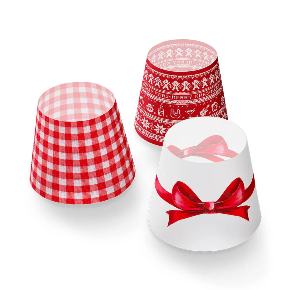 Mit den Mini Cappies Surprise verwandeln Sie Ihre Fatboy Edison the Mini Lampen in originelle Weihnachtslichter. Die Designschirme, die festliche Motive wie eine rote Schleife und das Muster eines weihnachtlichen Strickpullovers zeigen, lassen sich den beliebten Akkuleuchten einfach von oben her aufsetzen. Bitte beachten Sie, dass die Schirme nicht vormontiert geliefert werden, sondern in einem flachen Fatboy Umschlag. Sie können jedoch in einem einfachen Handgriff zusammengesteckt werden.