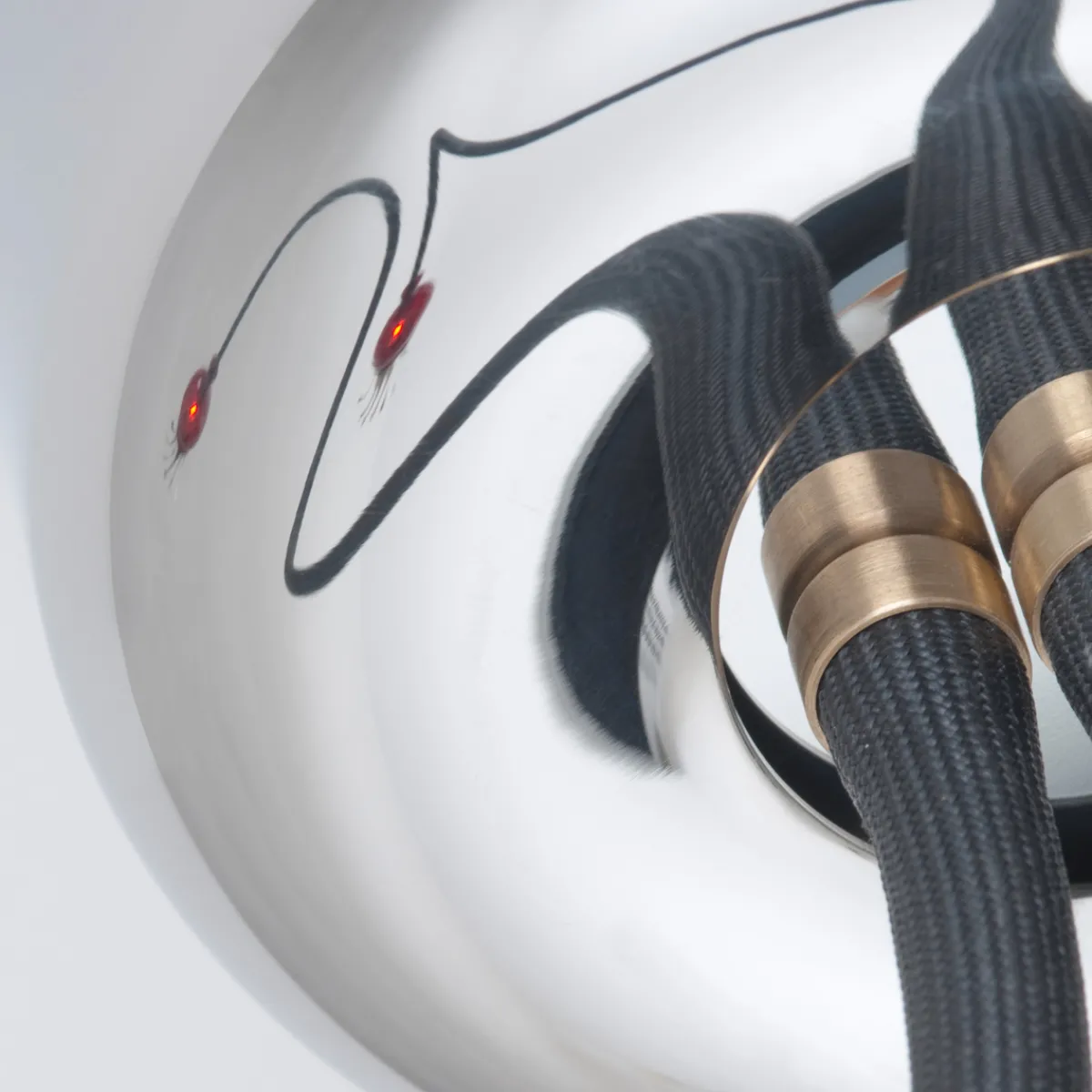 | Material/Oberfläche: | Lamellen: Bimetall, Flexarme: textilummanteltes Metall, Baldachin: Edelstahl poliert |