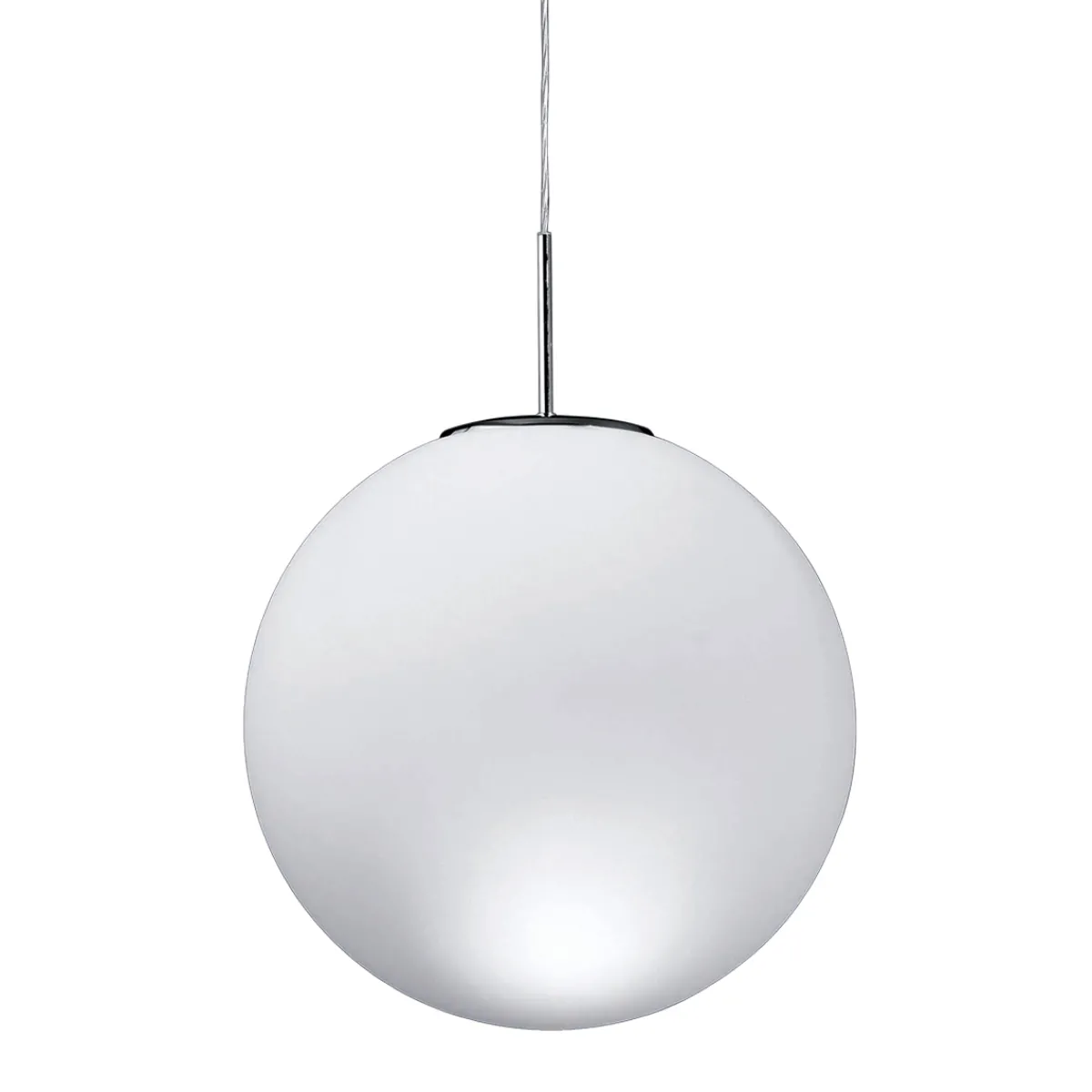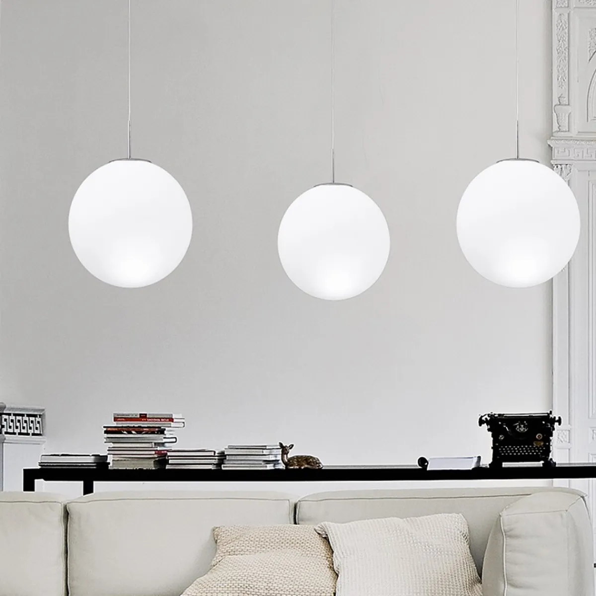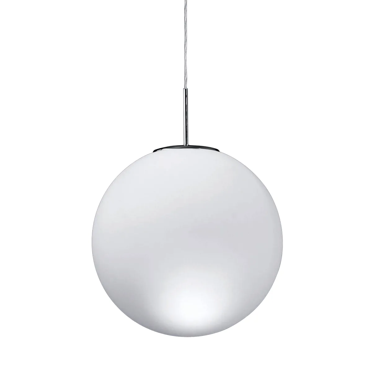 - Kugelförmiger Leuchtenschirm aus mundgeblasenem, opalweißem Glas für eine diffuse Lichtausstrahlung