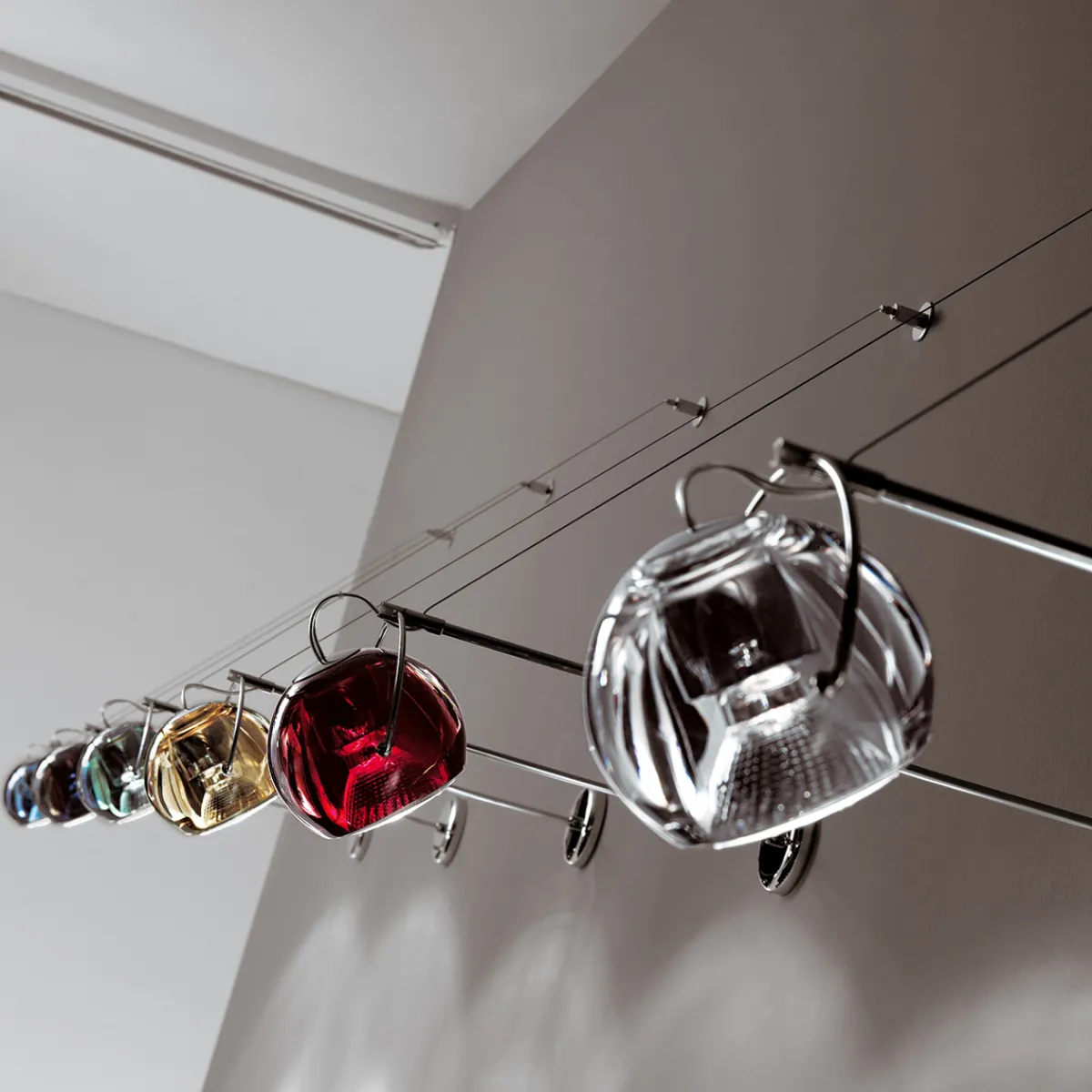 - Funktionale Wandleuchte aus Metall und farbigem Bleikristallglas