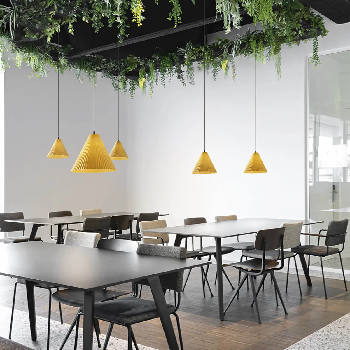 Das warmweiße, blendfreie Licht der Cone schafft eine angenehme Atmosphäre – perfekt für Esstisch, Küche oder Wohnzimmer. Ihr klares Design und ihre schwebende Leichtigkeit machen sie zu einem vielseitigen Highlight, das sich nahtlos in unterschiedliche Wohnstile einfügt.