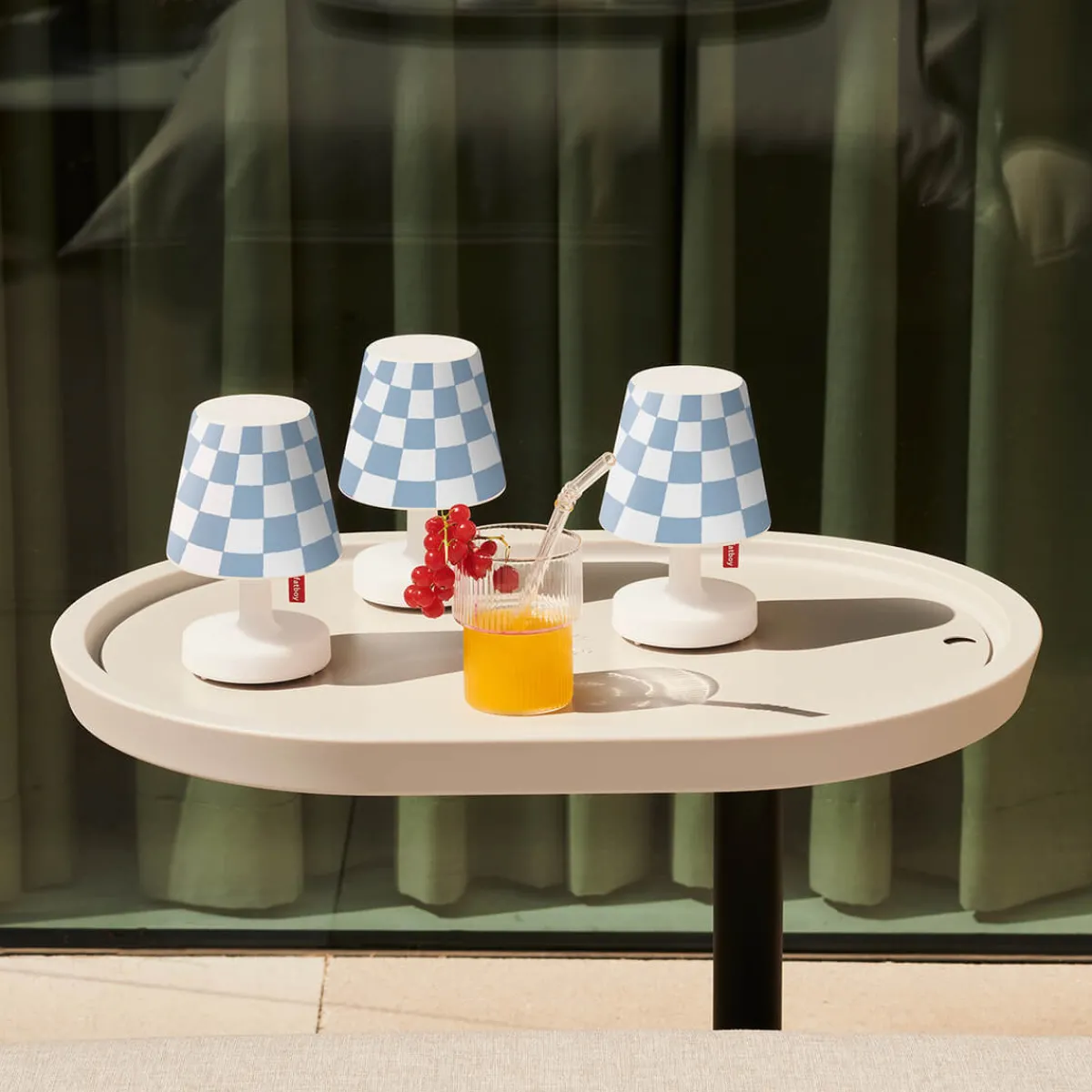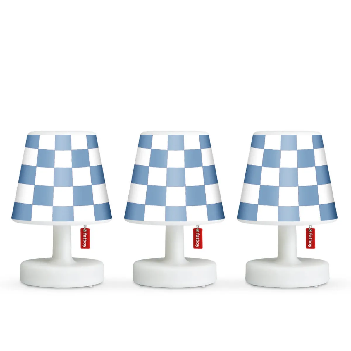 Das Edison the Mini LED Akkuleuchten-Set von Fatboy vereint stilvolle Beleuchtung und individuelles Design in einem praktischen 3er-Set. Jede der kompakten, kabellosen Tischleuchten wird mit einem passenden Mini Cappie Set Wave Ground geliefert. Die blau-weißen Schachbrettmuster der Cappies verleihen den Lampen einen modernen und freundlichen Look, der sich perfekt in jedes Interieur einfügt.