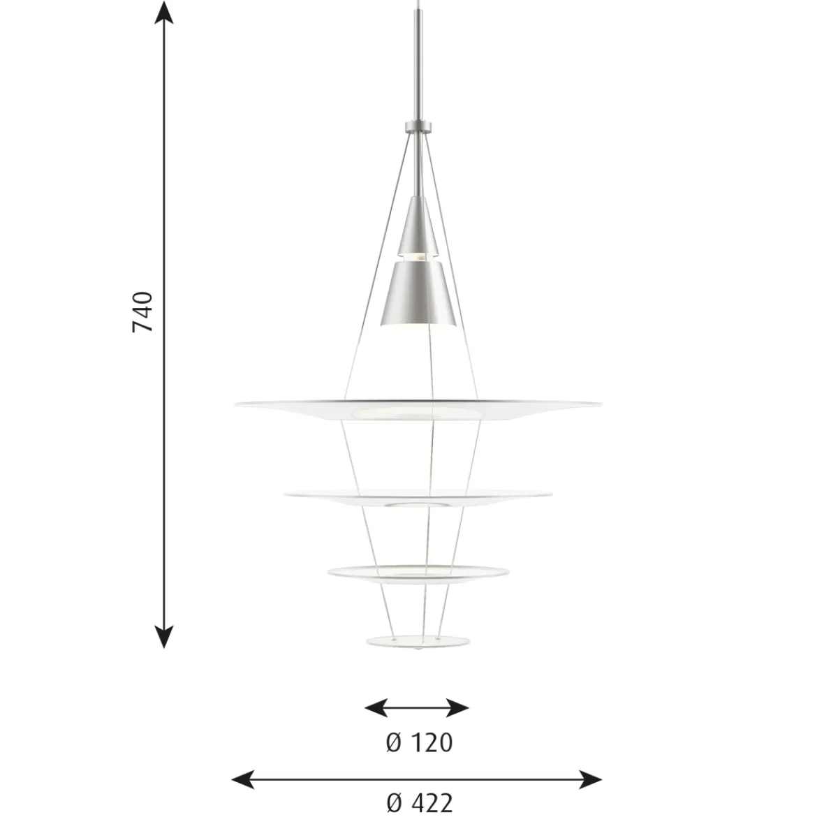 | Material/Oberfläche: | Aluminium gebürstet und klar lackiert / schwarz nasslackiert, Zuleitung transparent / schwarz, Stahlseil |