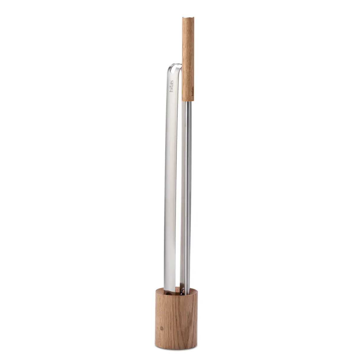Für nachhaltige Freude am Feuer: Der Holzfuß dient als kompakte Aufbewahrungslösung für die höfats Feuerzange und den Schürhaken mit Flammenbläser (als Zubehör erhältlich). Beide Firetools rasten harmonisch in den Sockel ein, sodass sie nicht nur sicher fixiert sind, sondern sich auch an der Feuerzange anheben und mobil transportieren lassen. Auf diese Weise können Sie das Set bequem vom Ofen im Wohnzimmer zur Feuerschale auf der Terrasse tragen.