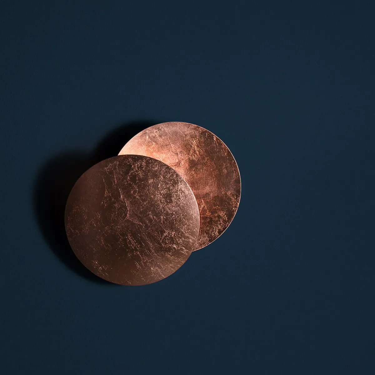 Die Catellani & Smith Lederam W 25 LED Wandleuchte ist in sechs verschiedenen Farbkombinationen erhältlich. Bei der weißen Variante sind Frontscheibe und Reflektorscheibe innen mit Blattgold oder -kupfer belegt, was dem Licht einen warmen Schimmer verleiht. Ebenso sind die schwarz lackierten Modelle mit vergoldeten oder kupferfarbenen Innenseiten für eine glanzvolle Lichtreflektion ausgestattet.