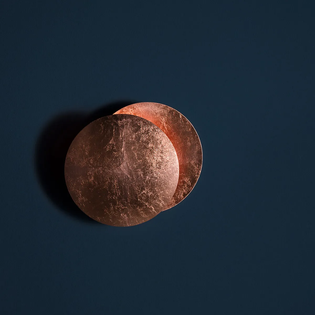Der Leuchtenkörper besteht aus zwei elegant gewölbten Aluminiumscheiben. Die vordere Scheibe ist schwenkbar und über ein Metallgelenk mit der hinteren Reflektorscheibe verbunden. Durch das Verstellen der vorderen Scheibe können Sie das Schattenspiel und den Lichtwirkungskreis individuell anpassen. Das integrierte LED-Modul sorgt für ein energieeffizientes, warmweißes Licht.