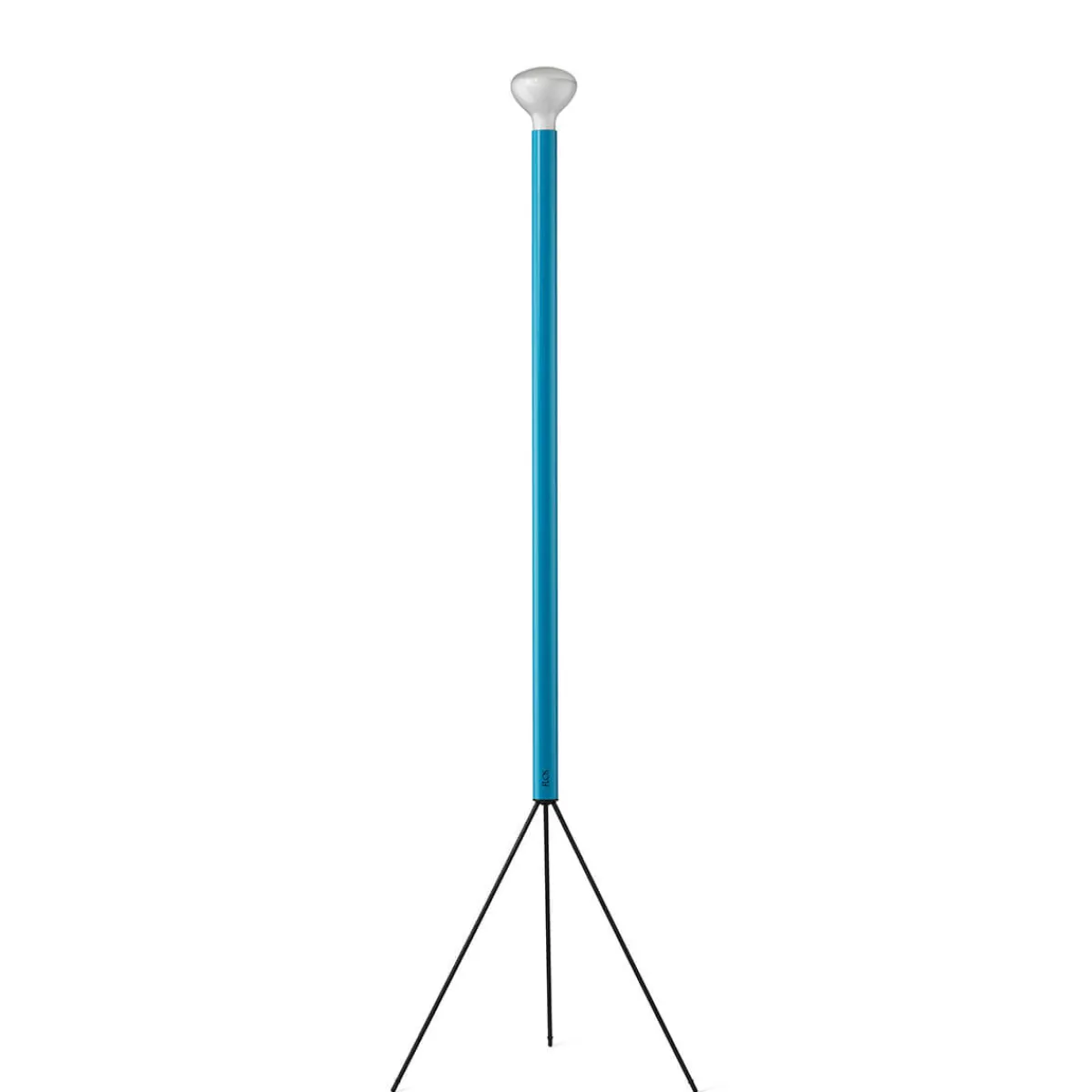 Seit 2022 ist die Luminator Stehleuchte, die es ursprünglich nur in anthrazitgrauer Tönung gab, in drei neuen auffälligen Farben erhältlich: in diskretem Weiß, leuchtendem Rot und erfrischendem Hellblau. Eine neue Lackiertechnik sorgt für mehr Nachhaltigkeit des Produkts, die schon im Designprozess beginnt. Gefertigt ist der schlanke Schaft aus Eisen. Standfestigkeit verleihen dem Deckenfluter drei zarte Beine aus Metall.