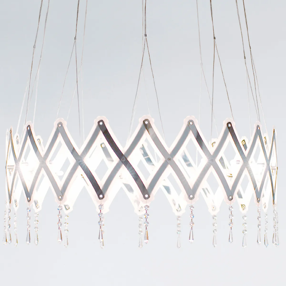 Zusätzlichen Reiz verleihen Sie der serien.lighting Zoom Pendelleuchte, wenn Sie ihren Lichtring mit funkelnden Kristallglasanhängern versehen. Diese sind als Zubehör erhältlich und lassen sich problemlos in die unteren Scherengitterdrehpunkte einhängen.
