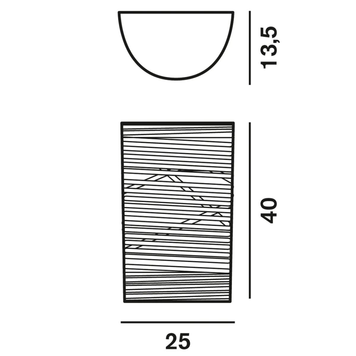 Ihre charakteristische Textur und Gestalt erhält die Foscarini Tress Piccola Parete durch ihren innovativen Materialmix: einen flüssiglackierten und mittels Kunstharz verstärkten Streifen aus Fiberglas, der während des originären Herstellungsprozesses in einer zufälligen Reihenfolge geflochten wurde. Die Wandhalteplatte und die Fassung, auf der die Beleuchtungstechnik ruht, bestehen aus spritzgegossenem, aluminiumfarben lackiertem Zamak.