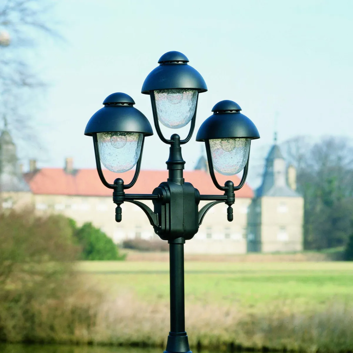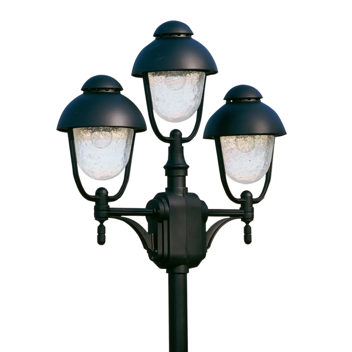- Dreiflammige Mastleuchte mit Schirmen aus Blasenglas