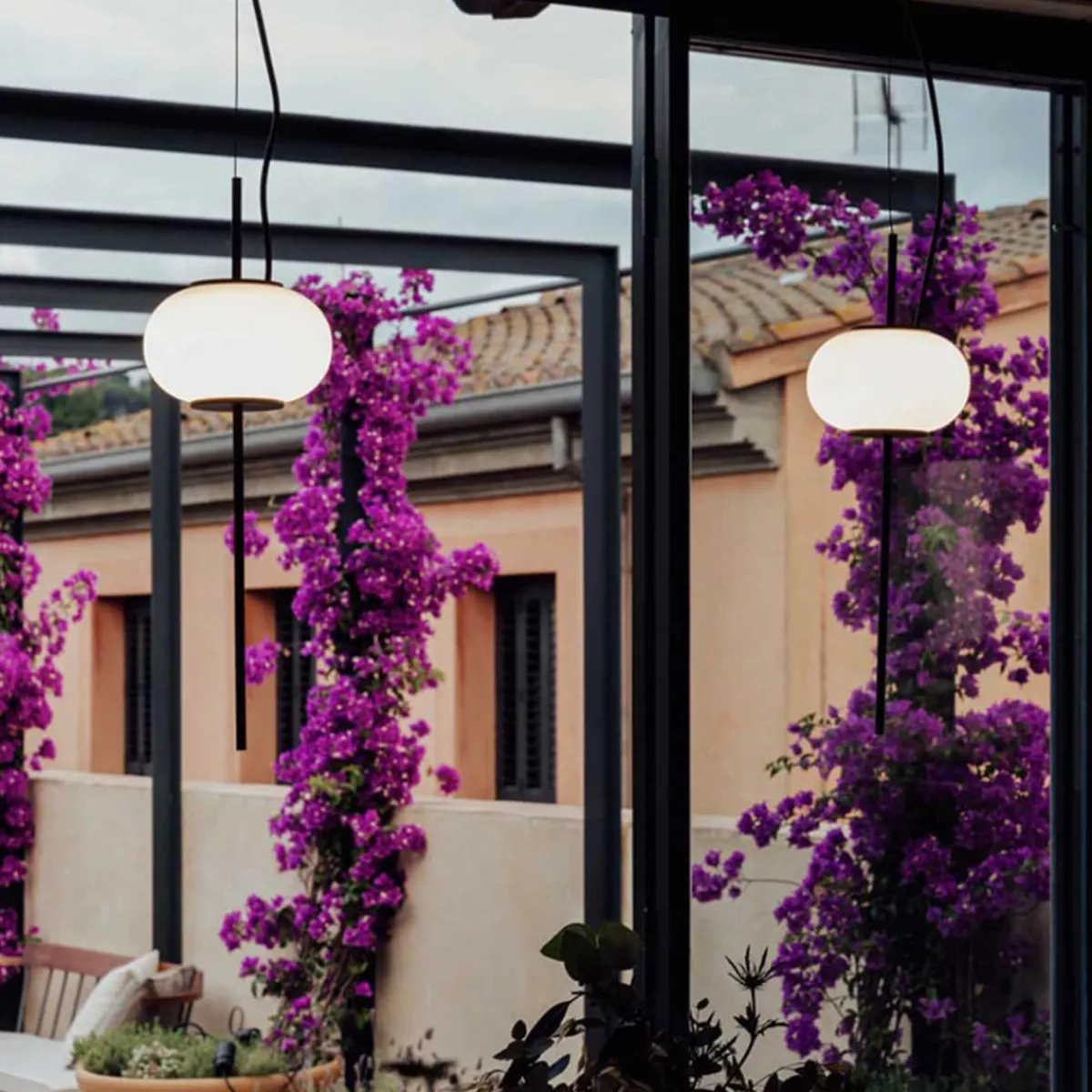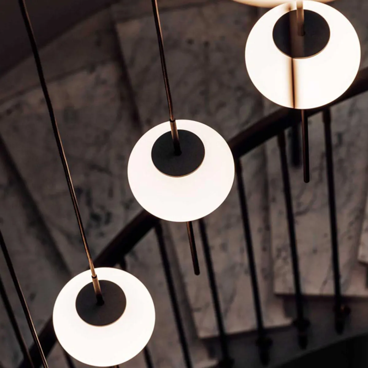 Filigrane in schwarz matter Oberfläche mit einem runden Opalglas Diffusor, die Astros Pendelleuchte ist höhenverstellbar und erhältlich in zwei Größen. Die Pendelleuchte mit einer Pendellänge von max. 300 cm ist vorkonfiguriert und wird mit einem einfachen Baldachin und einem Pendel angeboten. Auf Anfrage sind mehrflammige Leuchten aus 2, 3, 4, 5, oder bis zu 6 Pendel möglich.