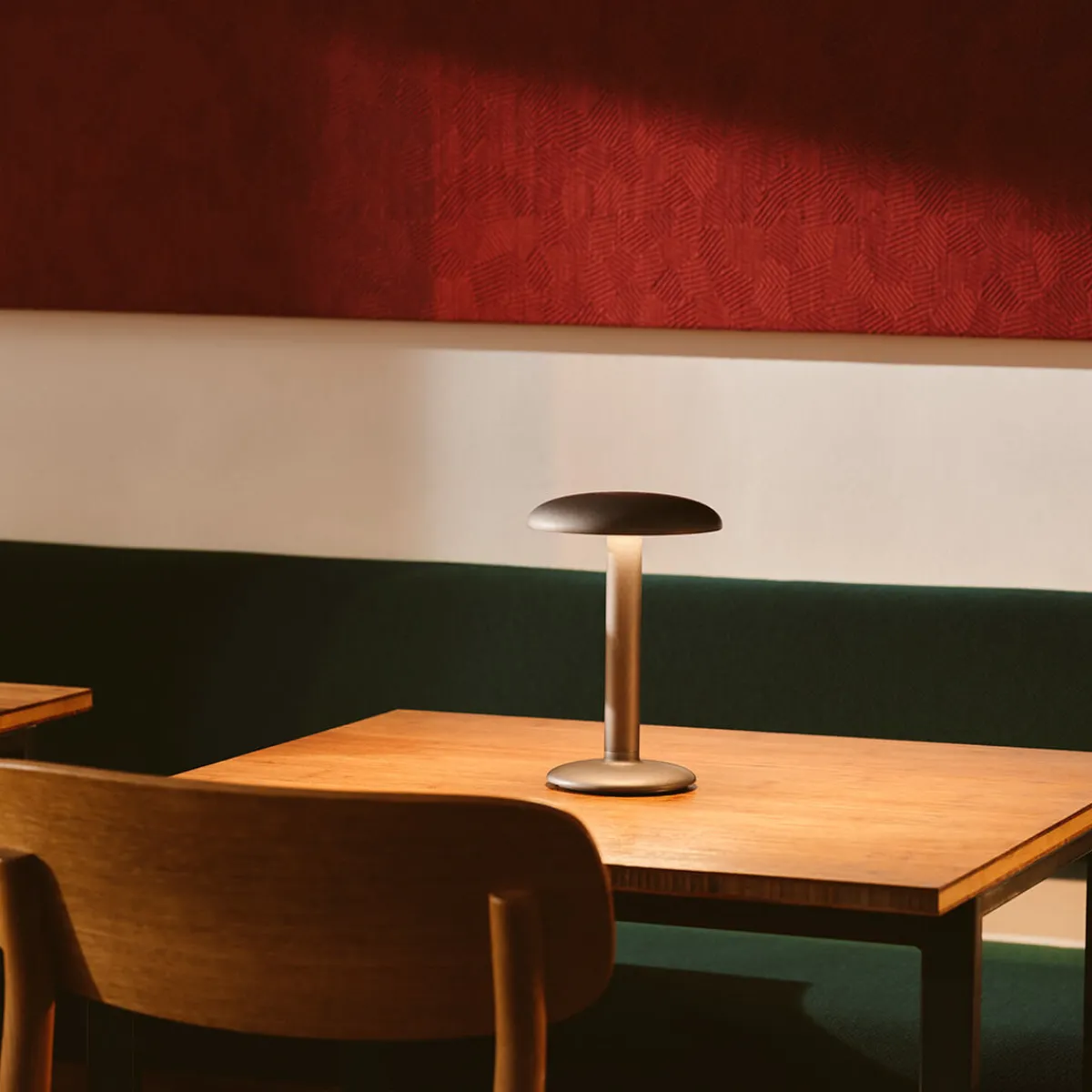 Ob auf dem Esstisch im Bistrot, der Theke einer Hotelbar oder auf der Terrasse eines Cafés – dank des leistungsstarken integrierten Akkus benötigt die Fos Gustave keine Steckdose zur Energiegewinnung. Vollständig aufgeladen über das mitgelieferte USB-C-Kabel, spendet die Akkulampe bis zu 18 Stunden kabelloses Licht – und bleibt dabei jederzeit mobil und flexibel einsetzbar.