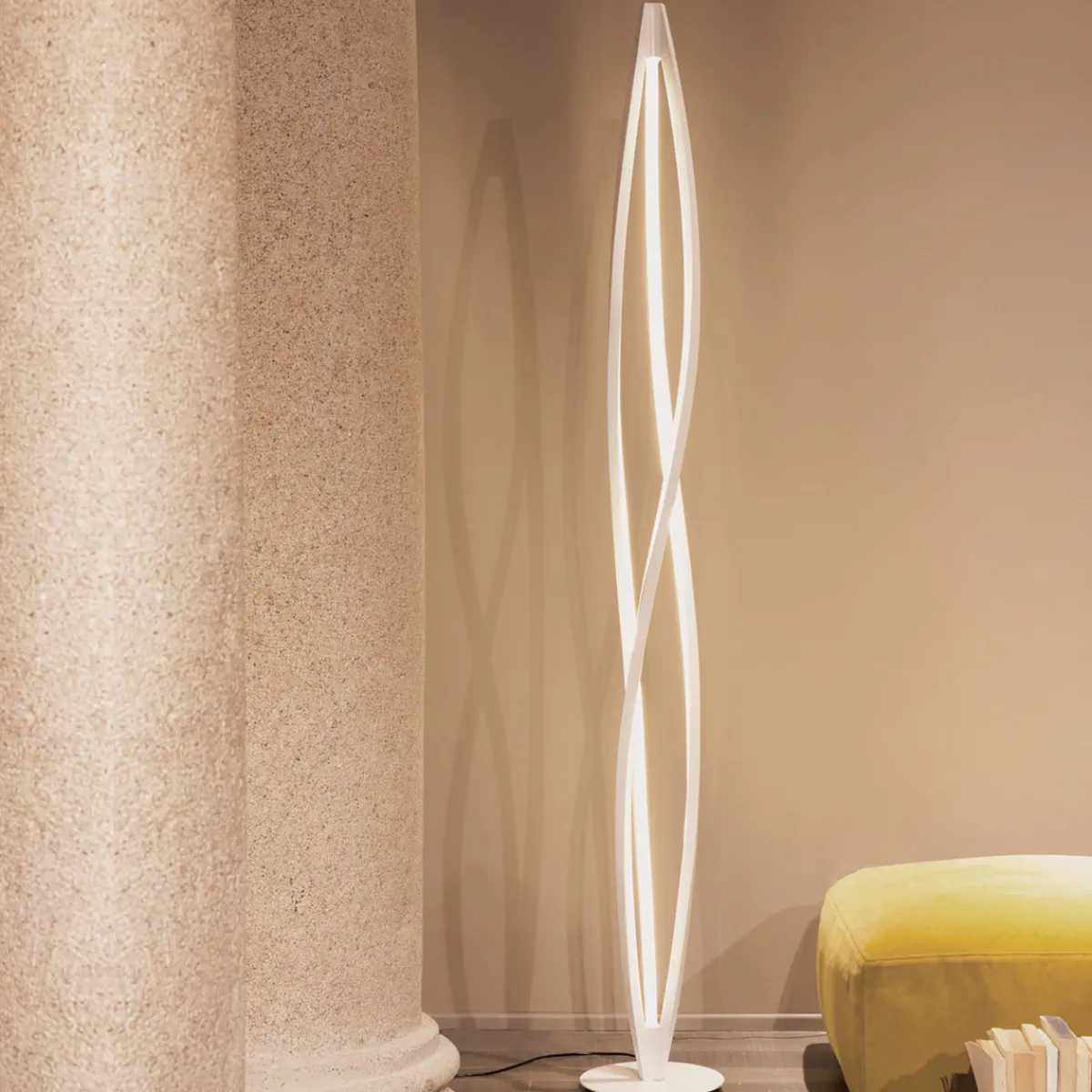 - Skulpturale Stehleuchte aus drei elegant gewundenen Lichtstreben