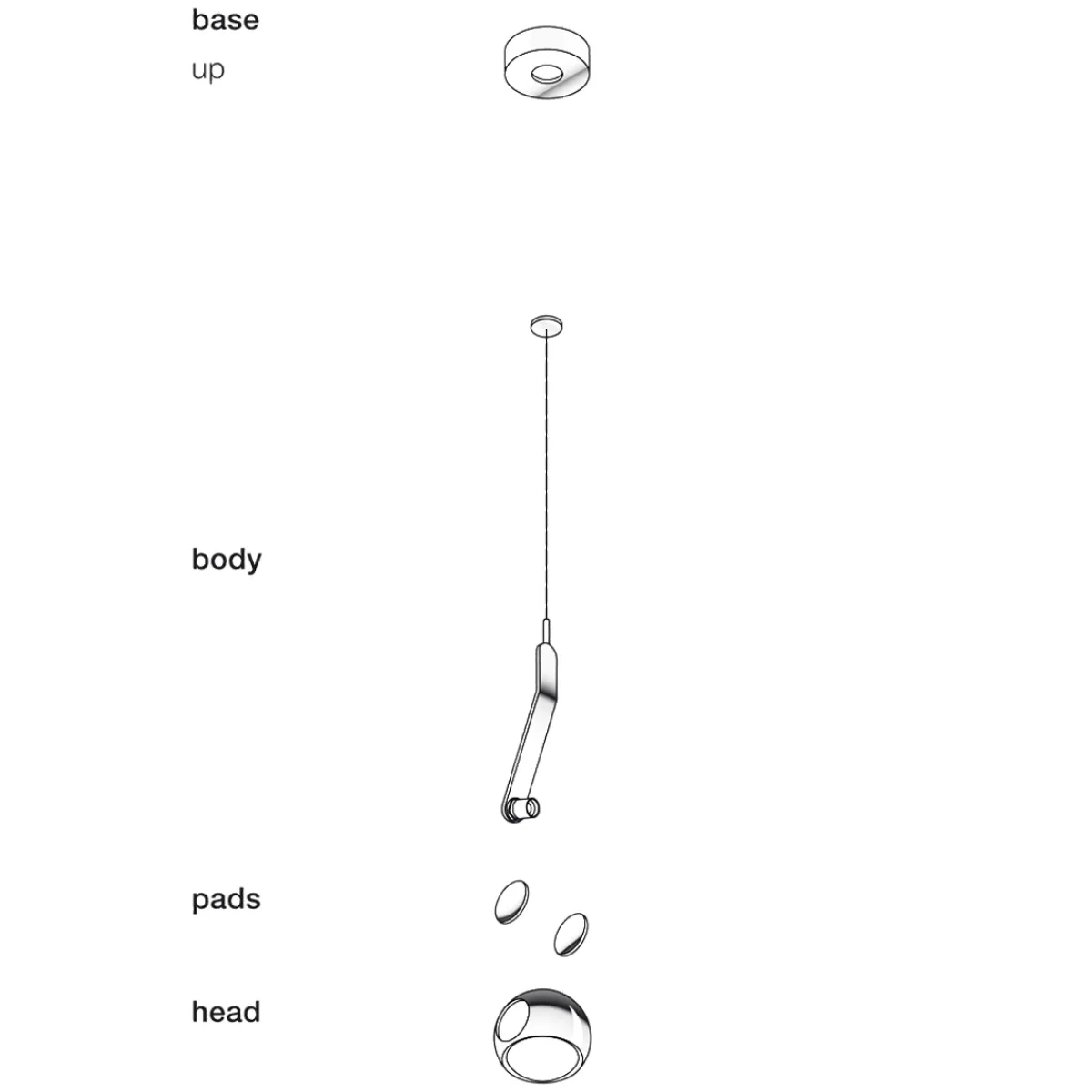 - Futuristisch anmutende Pendelleuchte in vielfältigen Oberflächenkombinationen