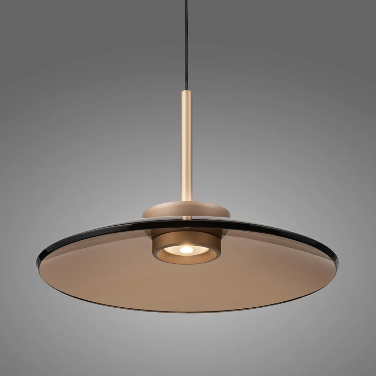 - Tellerförmige Pendelleuchte verfügt über einen Schirm aus feinem bernsteinfarbenem Glas