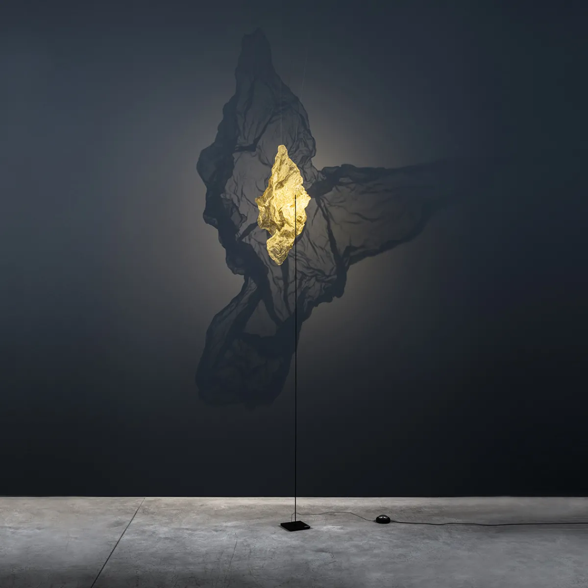 | Material/Oberfläche: | Kupferstange schwarz matt lackiert , Leuchtenfuß schwarz, Metallgewebe/Netz Messing veredelt |