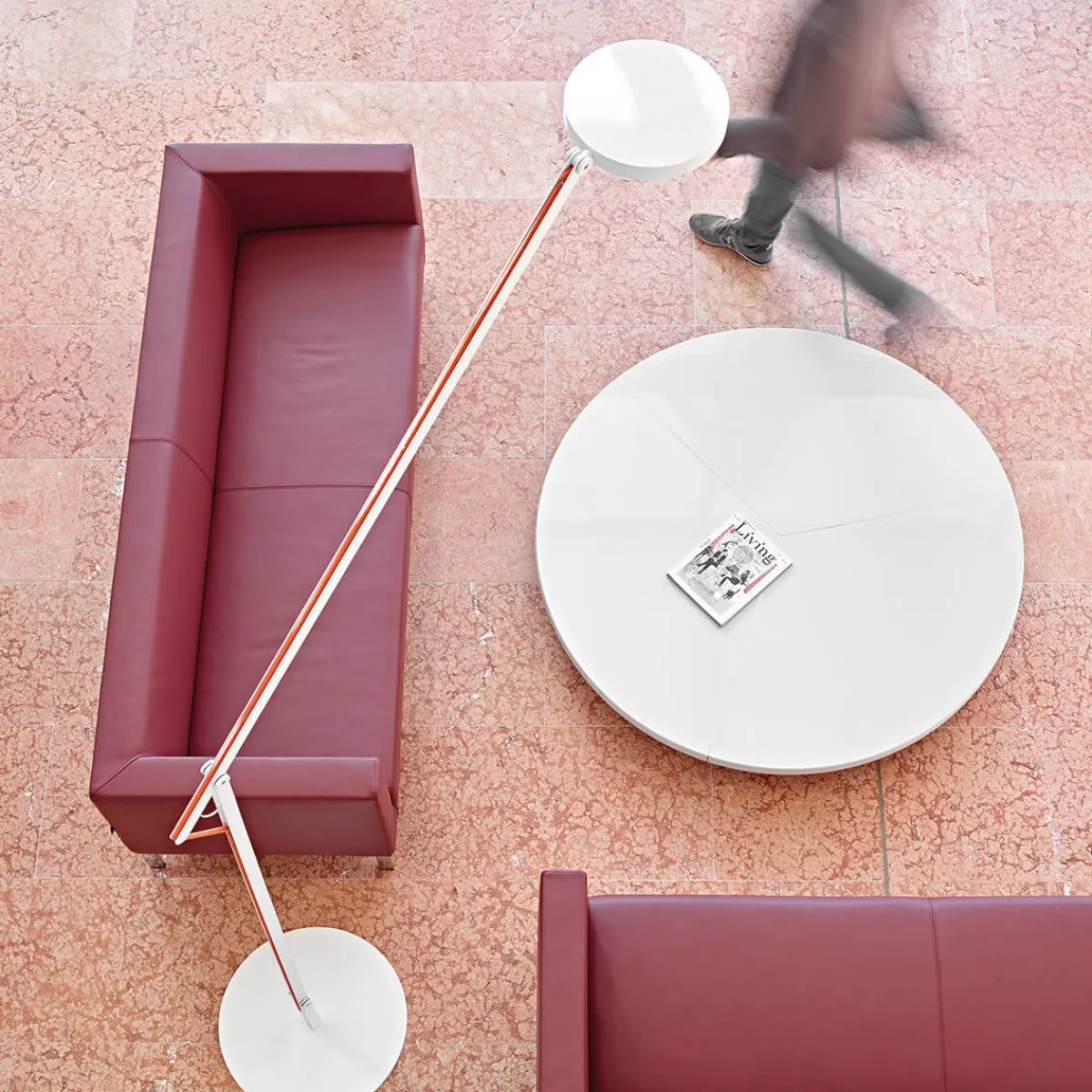 Die String XL von Rotaliana ist die große Version der String Tischleuchte. Es ist eine regulierbare Stehlampe, entworfen um ein Gebiet des Hauses von oben zu beleuchten: eine Ecke der Couch, des Esstischs, des Bürobereiches. Der Drehzapfenkopf ist aus gespritztem Aluminium und Polykarbonat, wohingegen der Leuchtenfuß aus Stahl ist. Die Bewegung der wird durch die elastische Schnur ersetzt, die aus synthetischem Stoff ist.