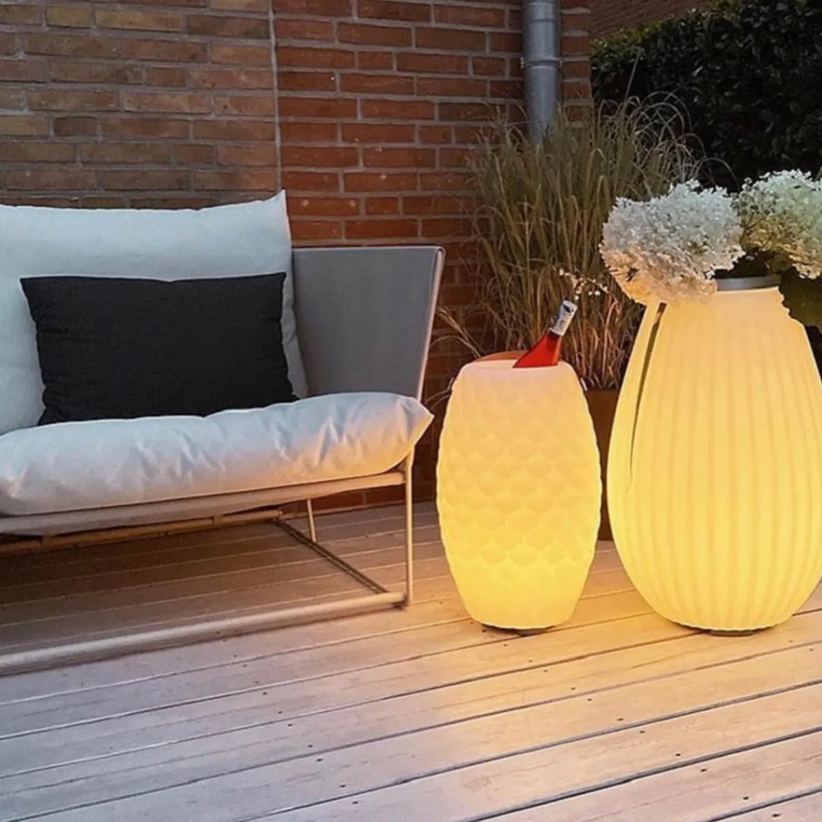 Sie haben keine Lust auf Party und mögen es lieber dekorativ? Kein Problem, denn das Innenfach kann auch zur Aufbewahrung von Blumen genutzt werden. Indem Sie die Joouly als beleuchteten Pflanzkübel nutzen, machen Sie sie zu einem echten Hingucker auf Terrasse und Innenhof.