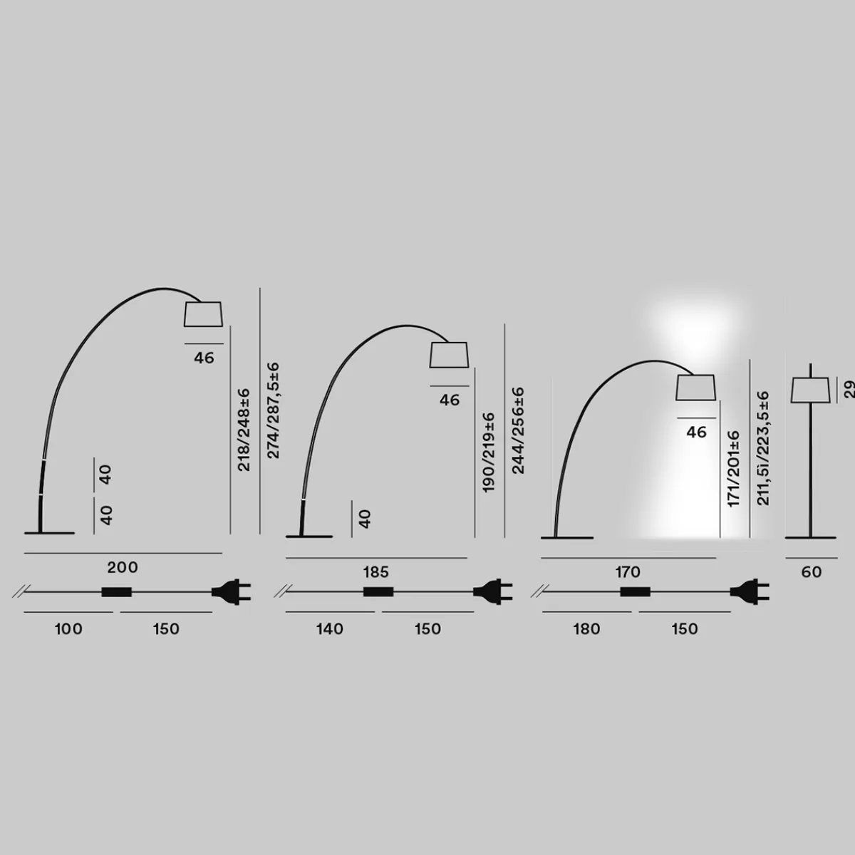 Ausgestattet mit einer energieeffizienten LED-Lichtquelle (2.700 Kelvin), bietet die Bogenleuchte ein warmweißes und gemütliches Licht. Die exzellente (CRI 90) sorgt dafür, dass beleuchtete Farben natürlich und lebendig wirken. Der Fußdimmer in der Zuleitung ermöglicht die Anpassung der Lichtstärke und unterstützt die Schaffung einer individuellen Lichtstimmung.