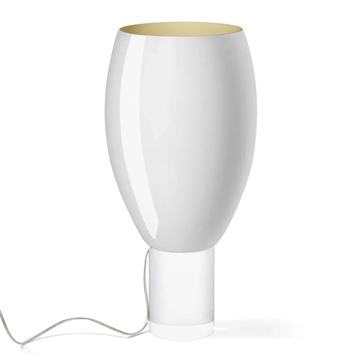 - Transparenter Leuchtenfuß betont das klare Design