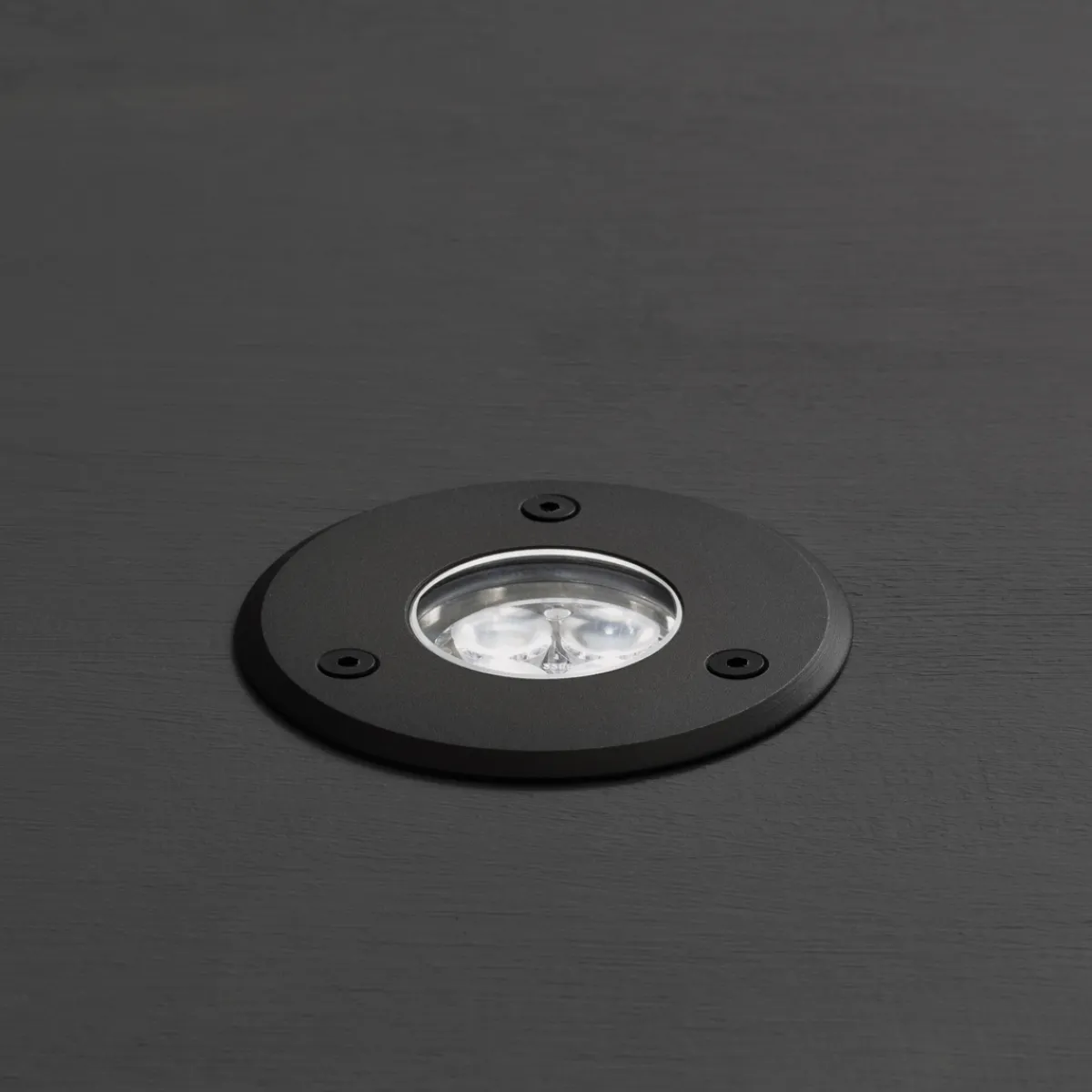 - Moderner, flacher Bodeneinbaustrahler zur akzentuierten Beleuchtung von Hausfassaden, Terrassen oder Baumkronen