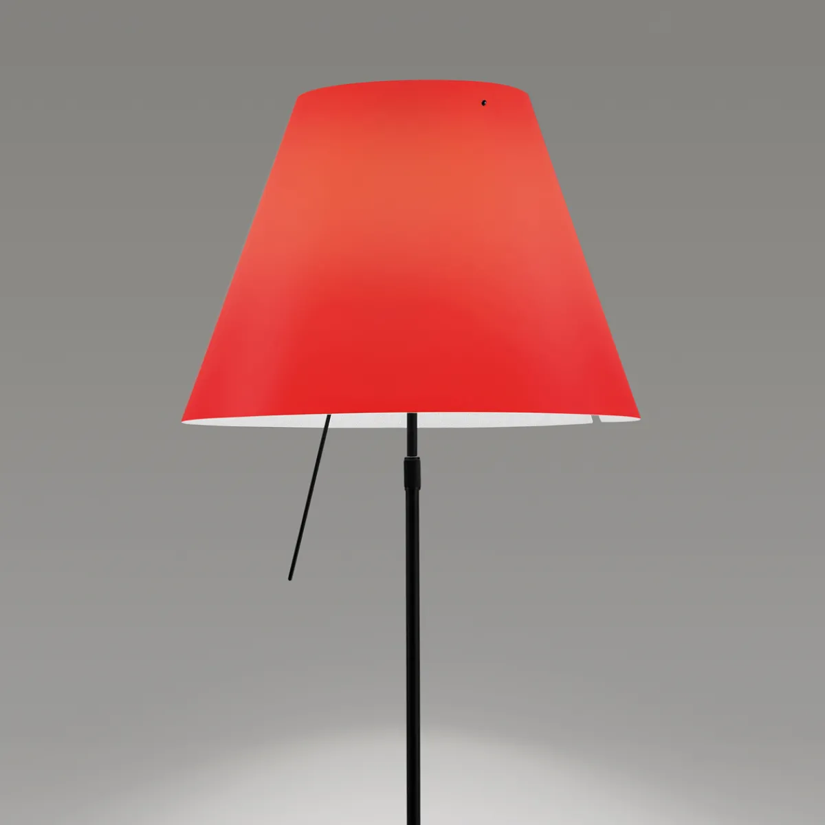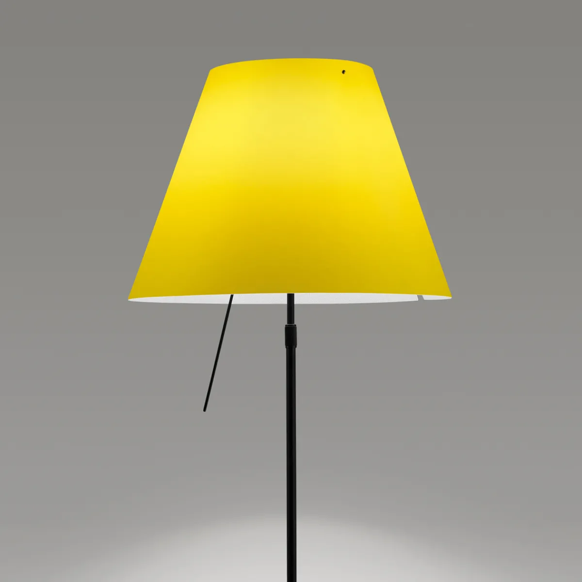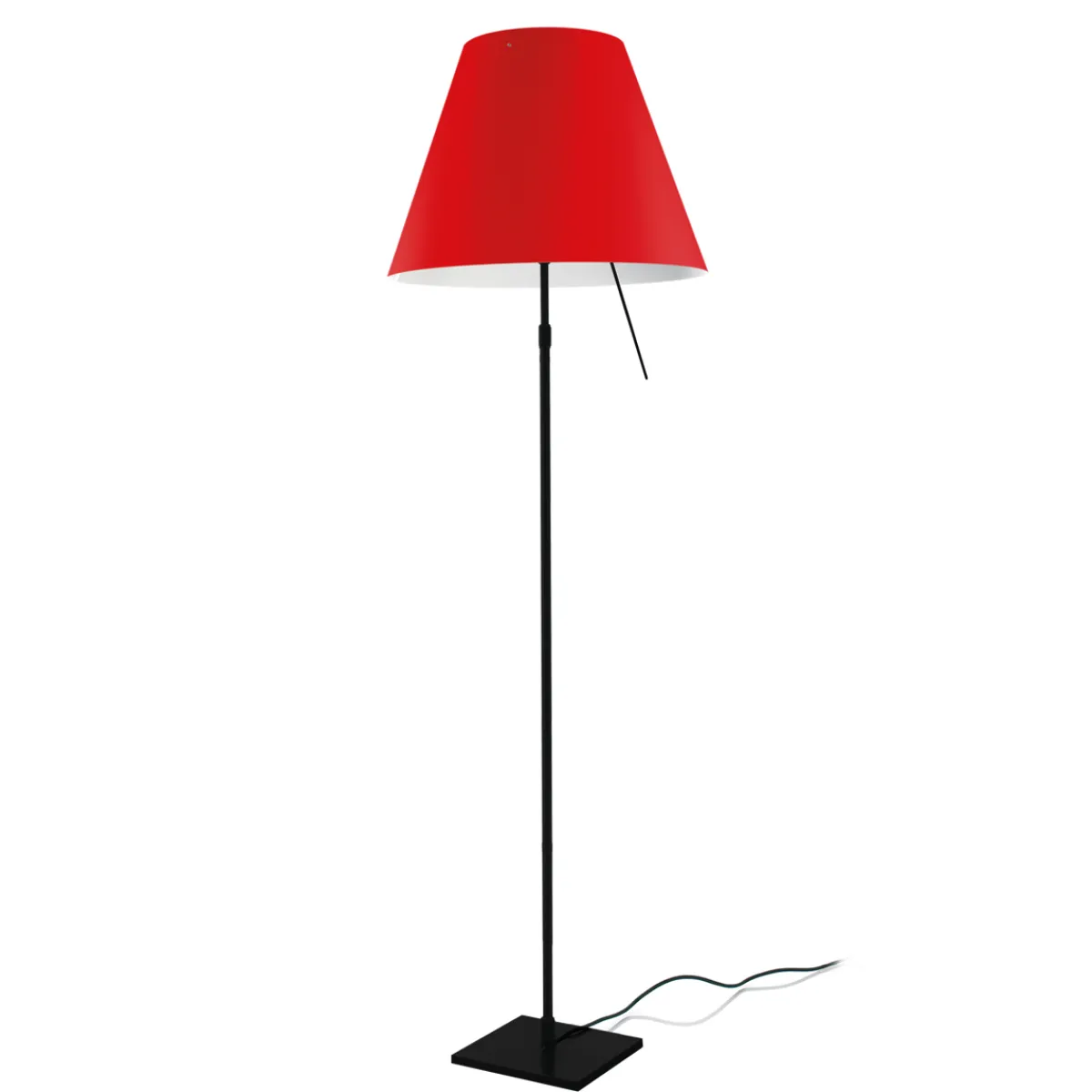 - Modern-schlichte Stehleuchte mit farbigem Kunststoffschirm