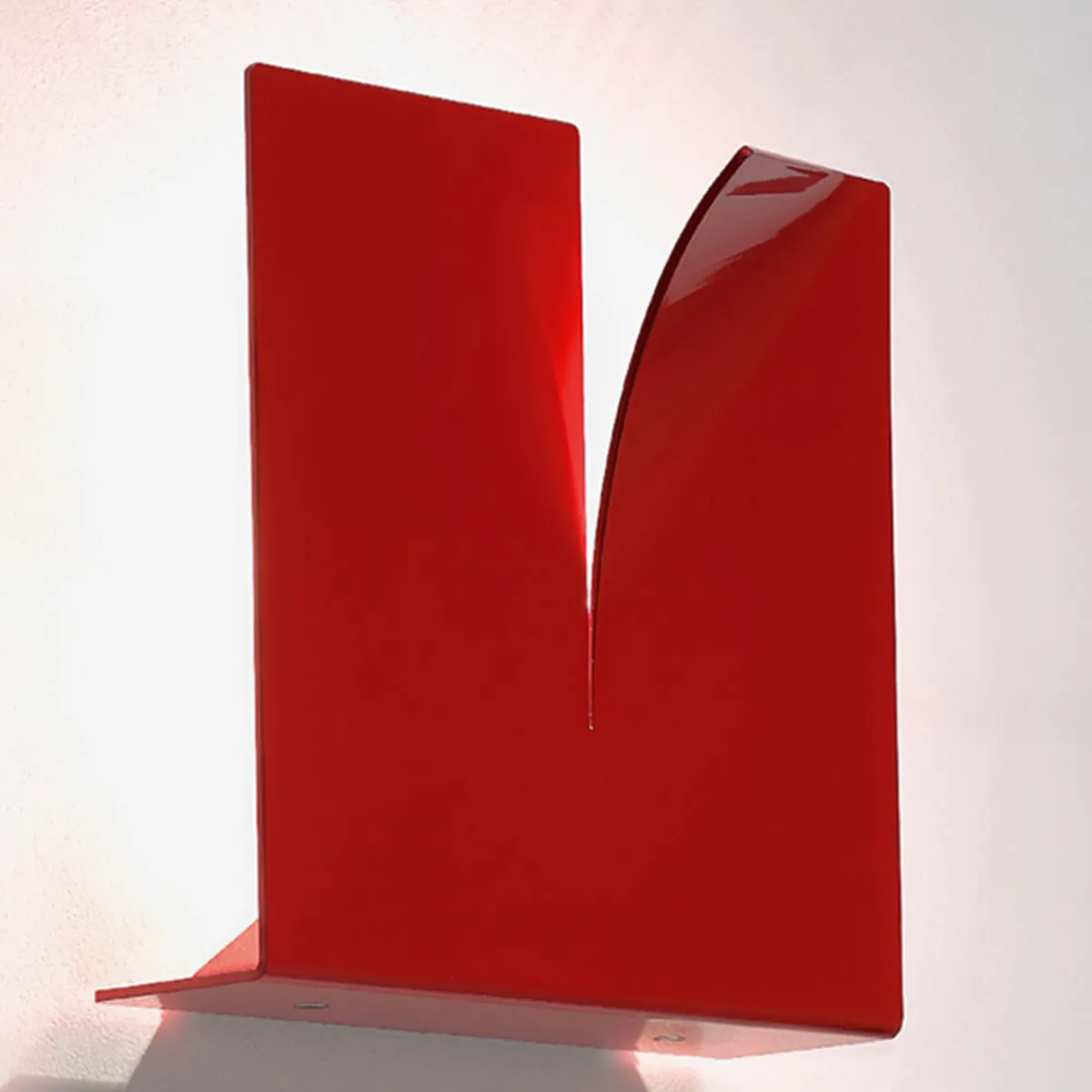 - Designer-Wandleuchte mit einem schwungvollem Knick im Leuchtenschirm
