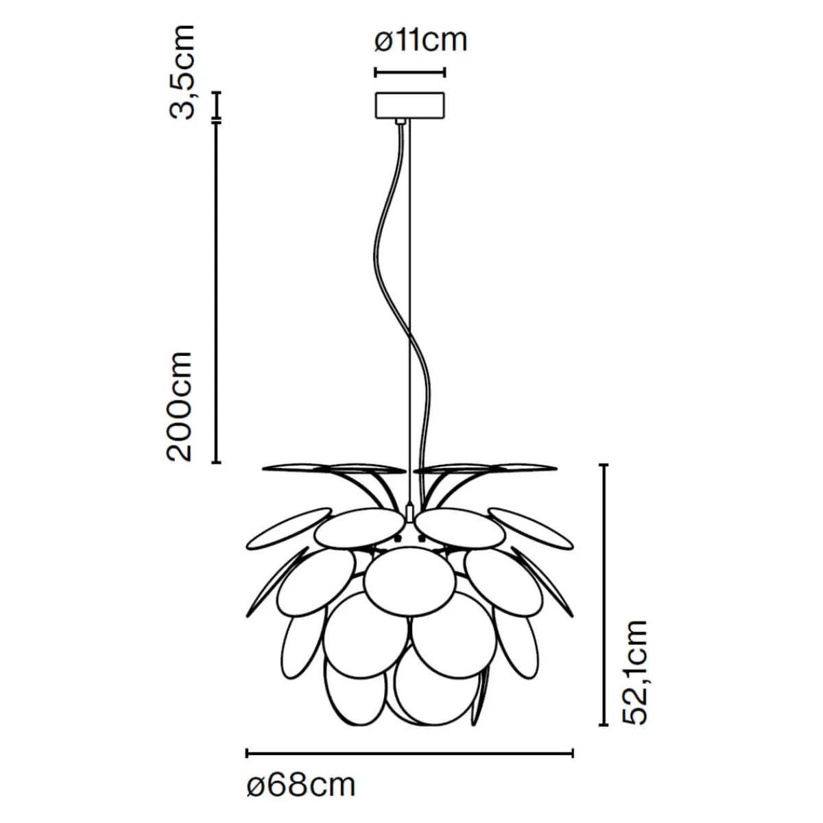 - Leuchtenkörper aus 35 lichtundurchlässigen ABS-Scheiben