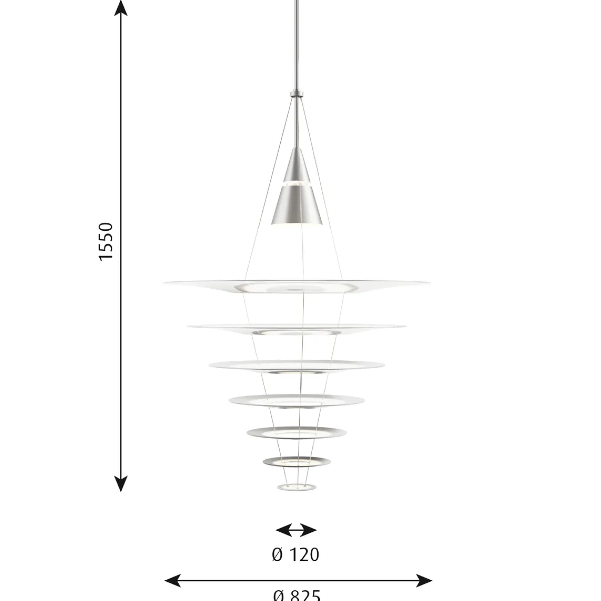 | Material/Oberfläche: | Aluminium gebürstet und klar lackiert / schwarz nasslackiert, Zuleitung transparent / schwarz, Stahlseil |