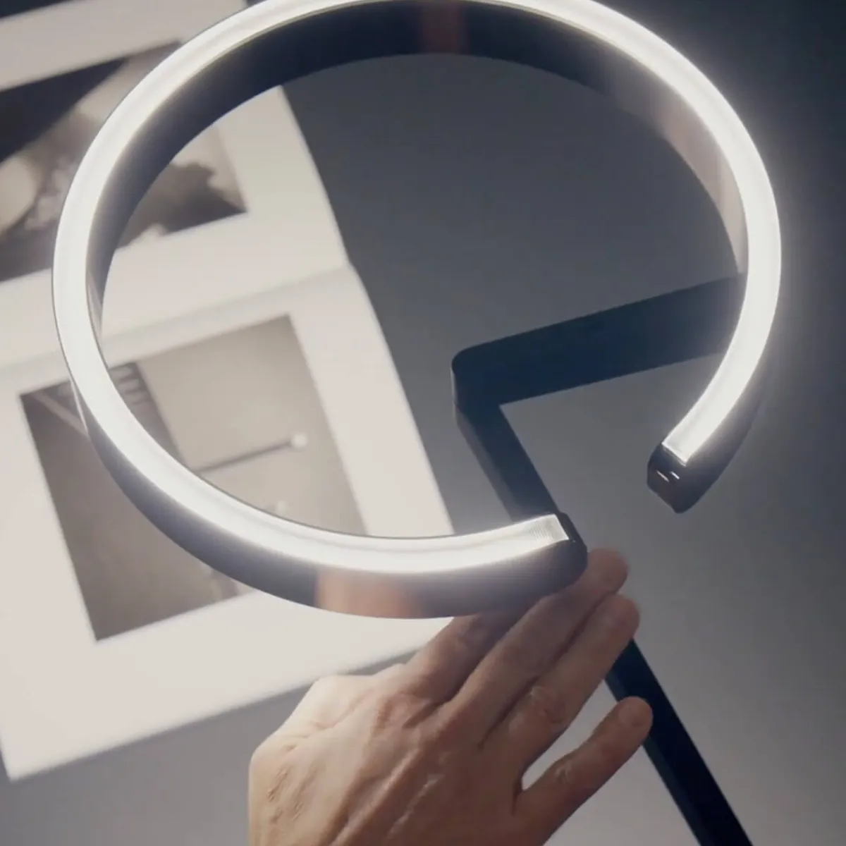 Eine raffinierte Mechanik („infinite move“) macht die Gioia equilibrio zu einem Meisterwerk der Bewegungskunst. Geschickt eingesetzte Gelenke und Steckkontakte garantieren nahezu grenzenlose Beweglichkeit und eine bedarfsgerechte Lichtausrichtung. Der zweiteilige Körper ist frei höhenverstellbar und ohne Anschlag um 360° drehbar. Auch der ringförmige Mito head lässt sich um 360° drehen. Der Kopf bleibt in jeder Position absolut waagerecht, sogar bei der maximalen Ausladung von 82 cm.