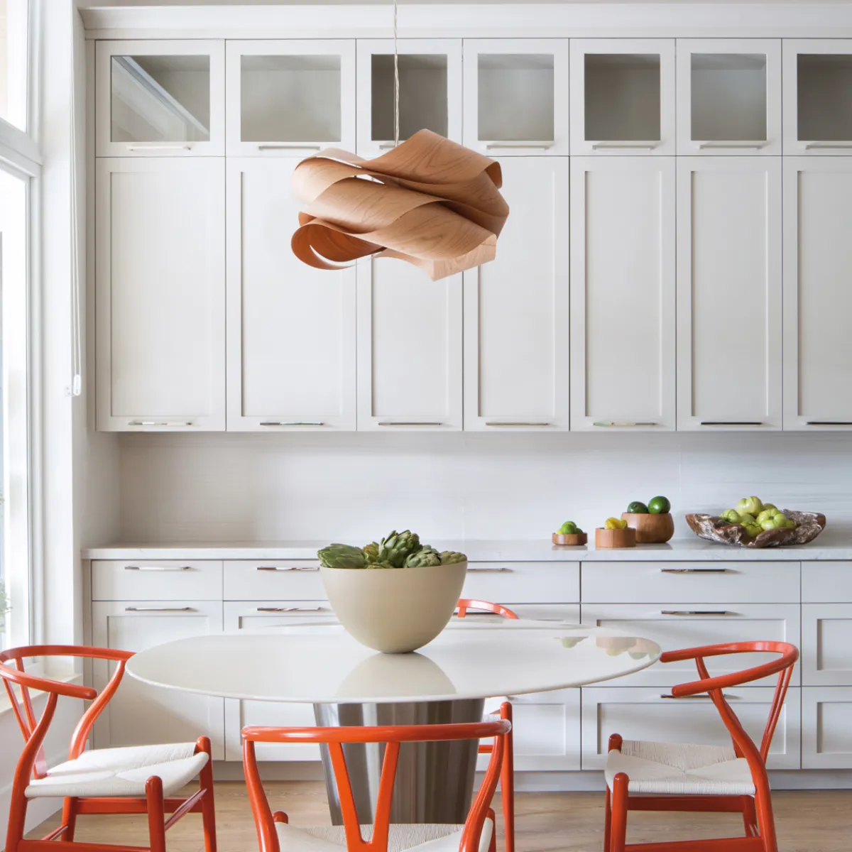 Ihr direkter und indirekter Lichtaustritt sorgt für eine stimmungsvolle Beleuchtung über Esstischen, Theken oder in offenen Wohnbereichen. Auch in Restaurants, Hotels und Loungebereichen setzt die preisgekrönte Pendellampe ein stilvolles Statement.