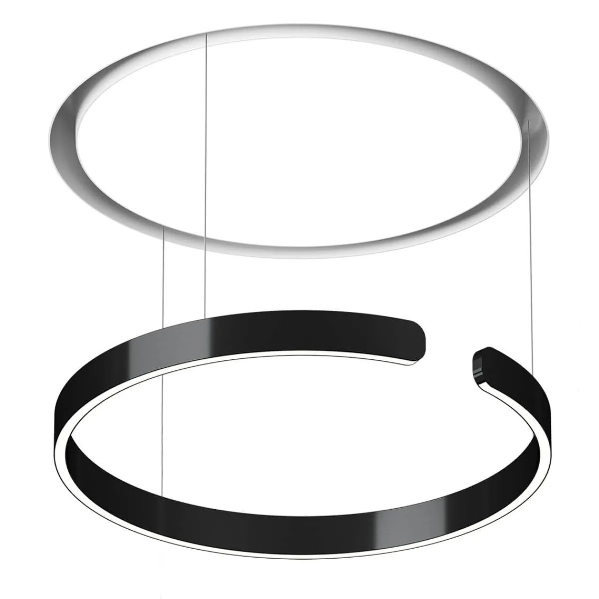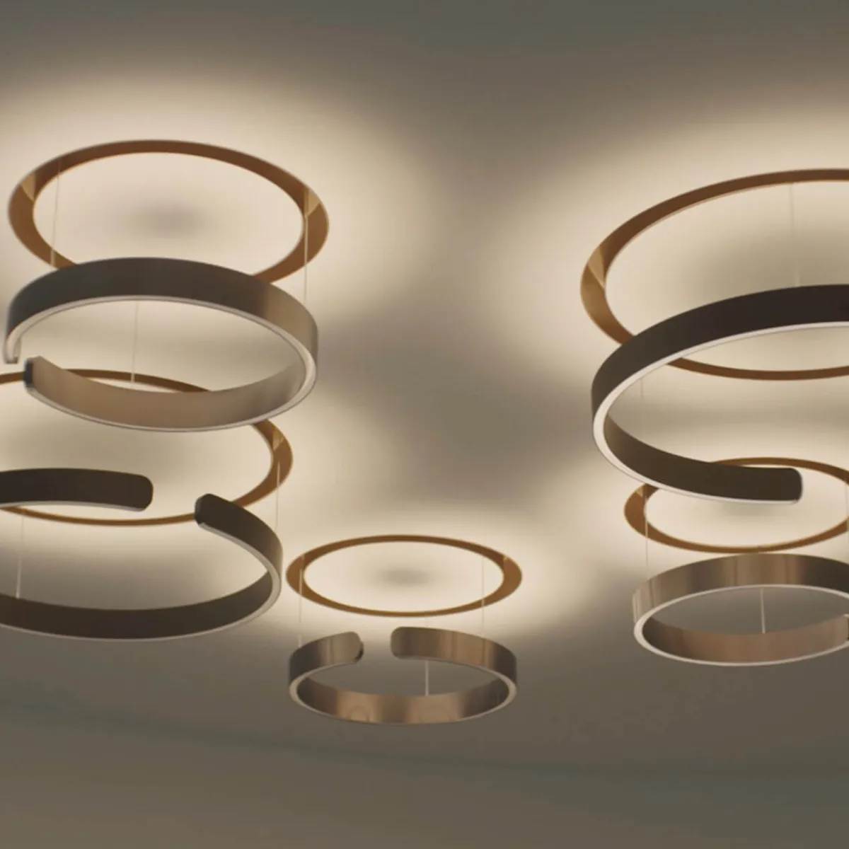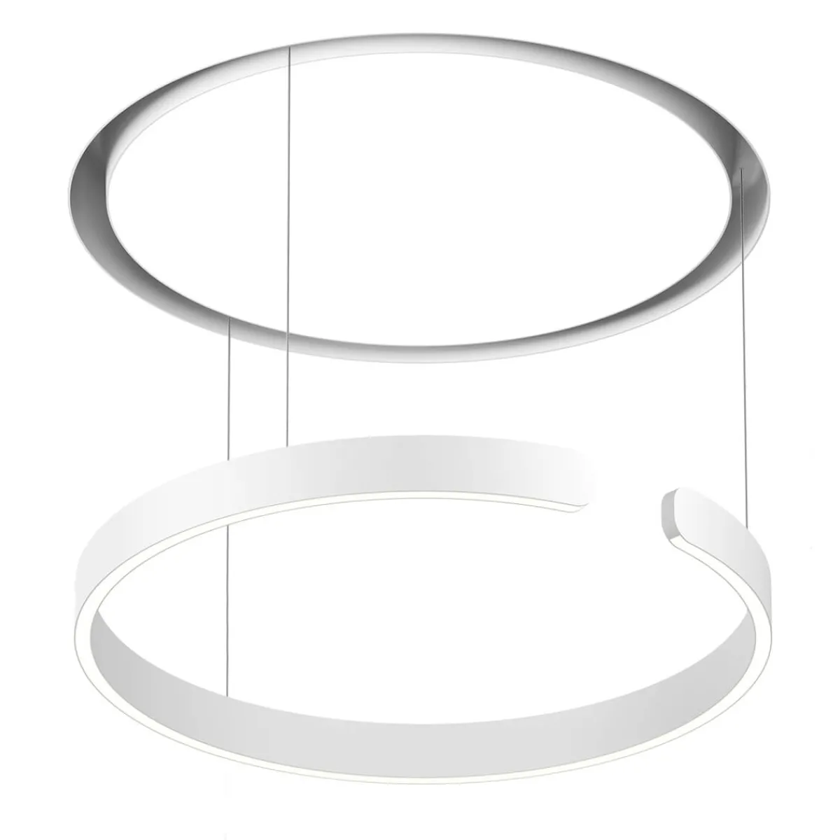 Mittels Einputzelement und weiß mattem light channel lässt sich die Pendellampe deckenbündig in eine Hohlraumdecke montieren. Das Besondere hierbei: Der ringförmige Leuchtenkopf ist vollständig in den light channel einfahrbar, wodurch die scheinbar in der Decke verschwindet und einen futuristischen Glow erzeugt – ein geradezu magischer Prozess, der in ein reizvolles Stimmungslicht mündet.