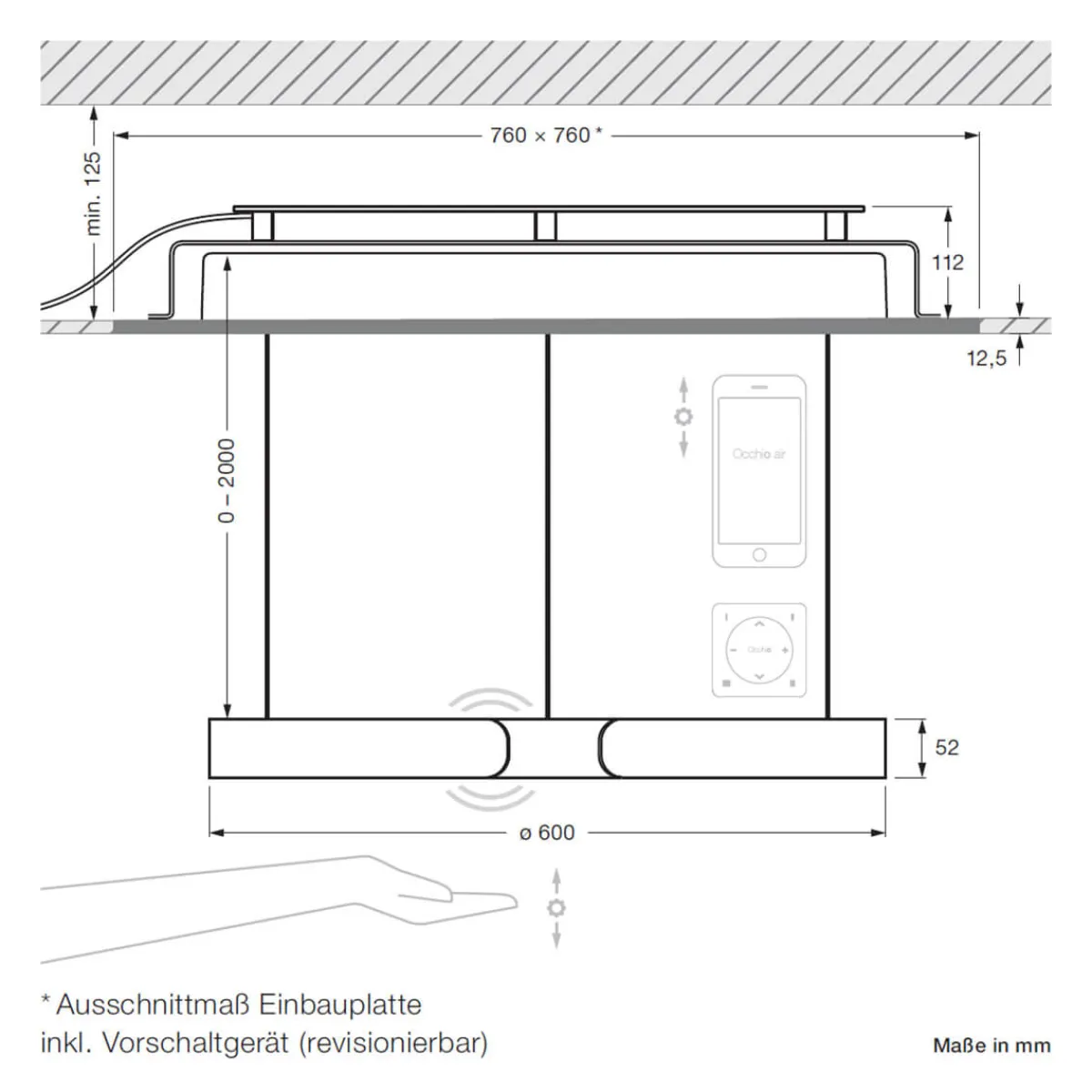 | Sonstige Maße: | Ausschnitt Einbauplatte: 76 x 76 cm |