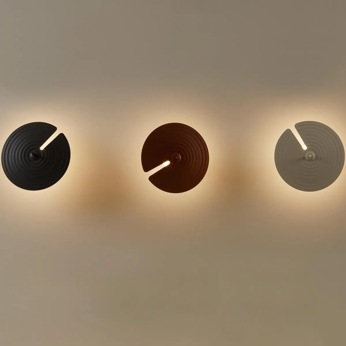 | Material/Oberfläche: | Glänzendes opales geblasenes Glas mit eingespritztem Polycarbonat, Schirm aus Aluminium, farbig lackiert, Wandbefestigung aus lackiertem Stahl |