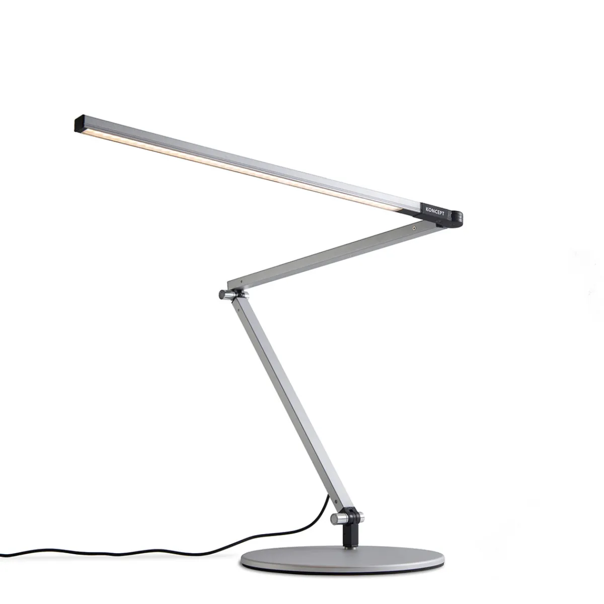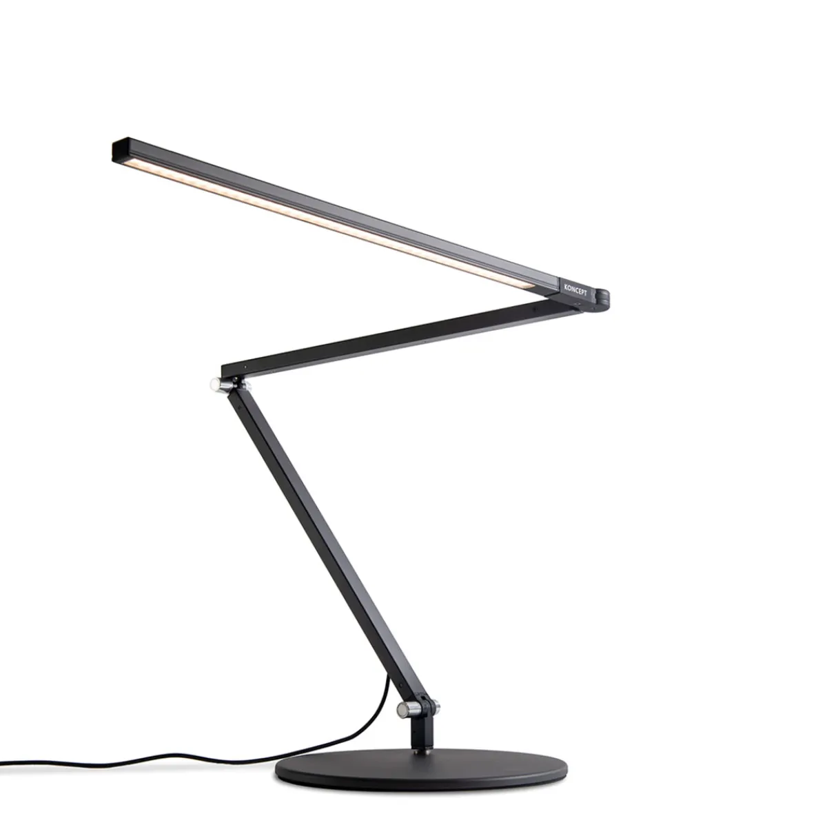 Die innovative Z-Bar Tischleuchte markiert den Beginn der Erfolgsgeschichte des amerikanischen Designstudios Koncept. Die Tischleuchte repräsentiert das Flaggschiff des Designunternehmens und gilt als Inbegriff eines ausgeklügelten, minimalistischen Designs. Sie ist die perfekte Lichtquelle, um Arbeitsplätze effizient zu beleuchten, und dies sowohl im Hinblick auf die verwendete Lichtquelle als auch auf die Anwenderfreundlichkeit.