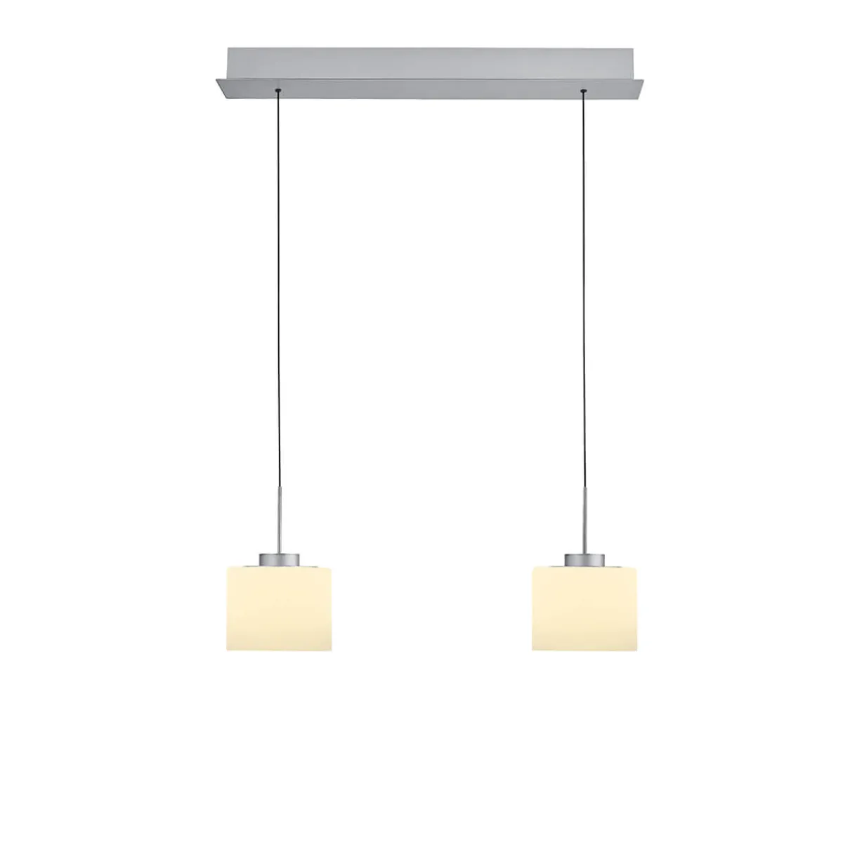 Die LED-Hängeleuchte Abby von HELL bietet eine stilvolle Beleuchtung für mittlere Esstische in Küche, Esszimmer und Wohnküche. Mit zwei nebeneinander angeordneten Schirmen aus opalweißem Glas verteilt sie das Licht gleichmäßig über die gesamte Tischfläche und schafft eine warme, einladende Atmosphäre.